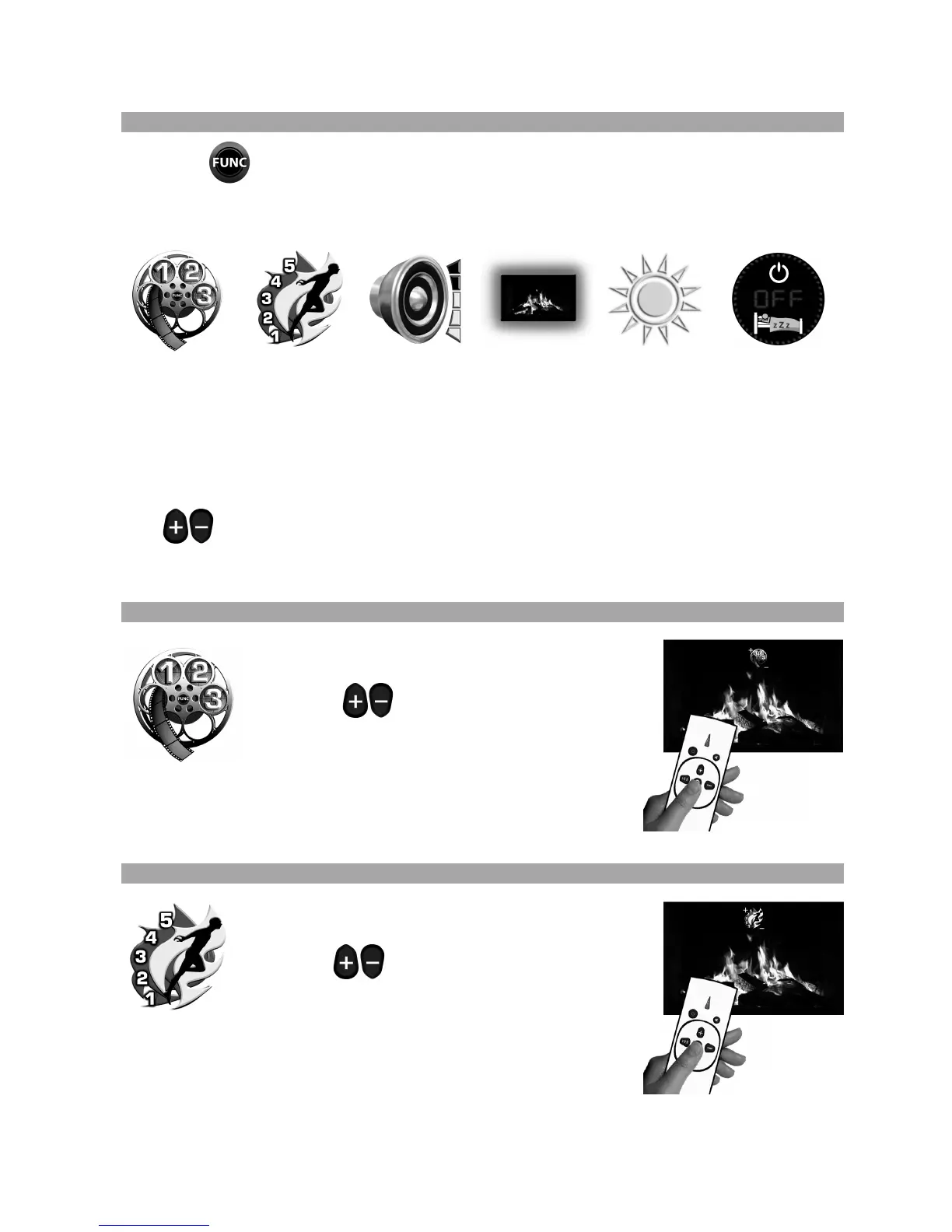 To access each of the functions simply continue to press the ‘FUNC’ button until the required