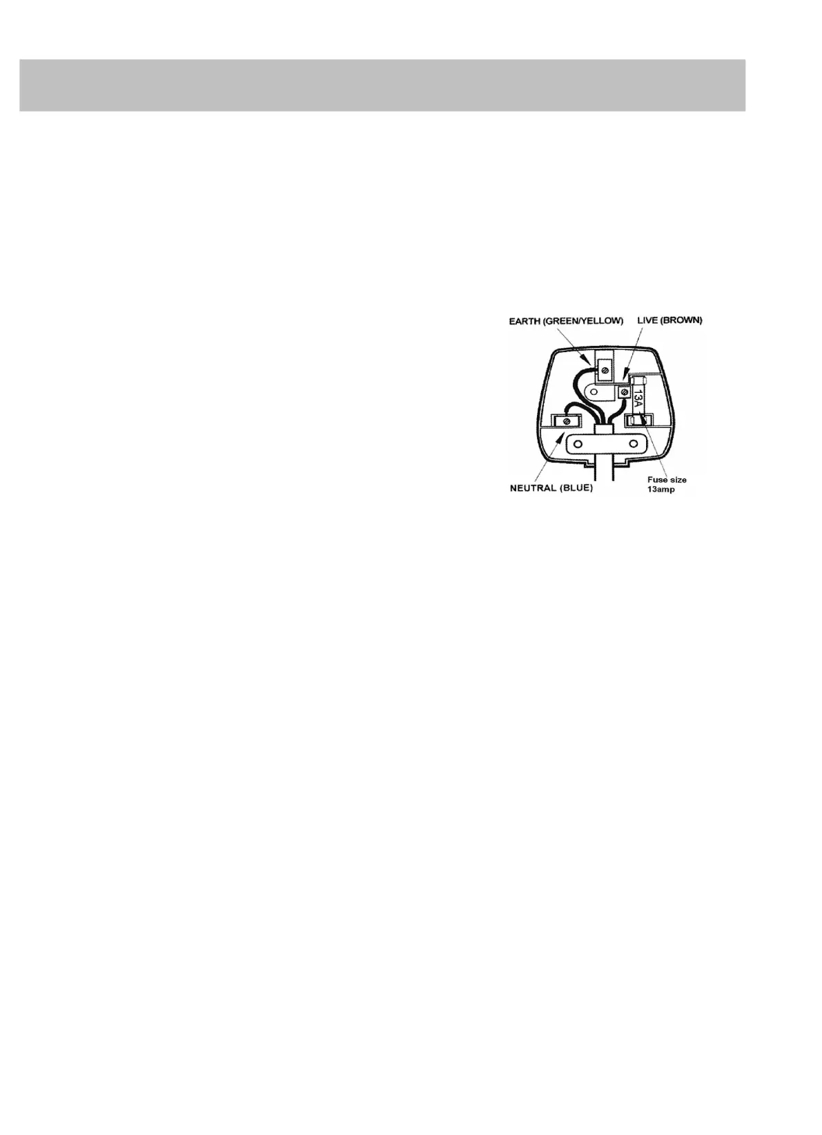 a 13A fuse. Should the fuse or plug need replacing, and