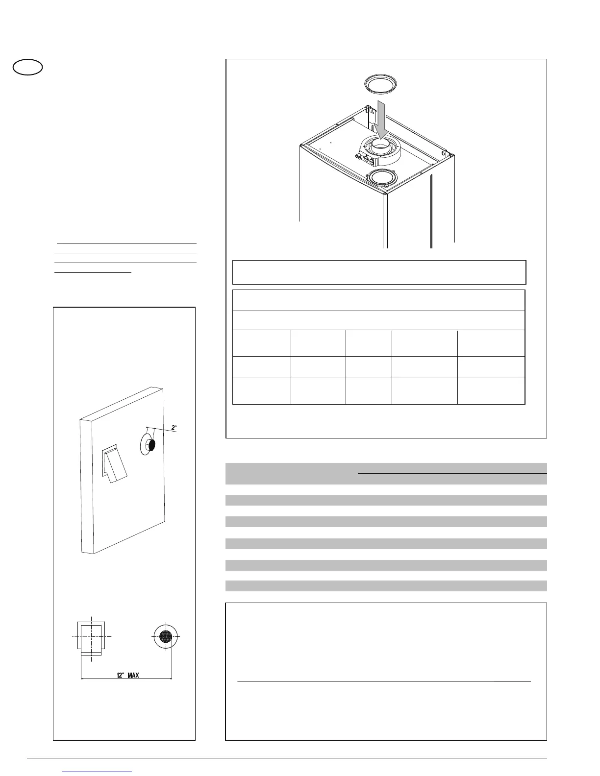 With outlet type C12, install diaphragm ø 84 mm/3.3 inch only if the coaxial flue is