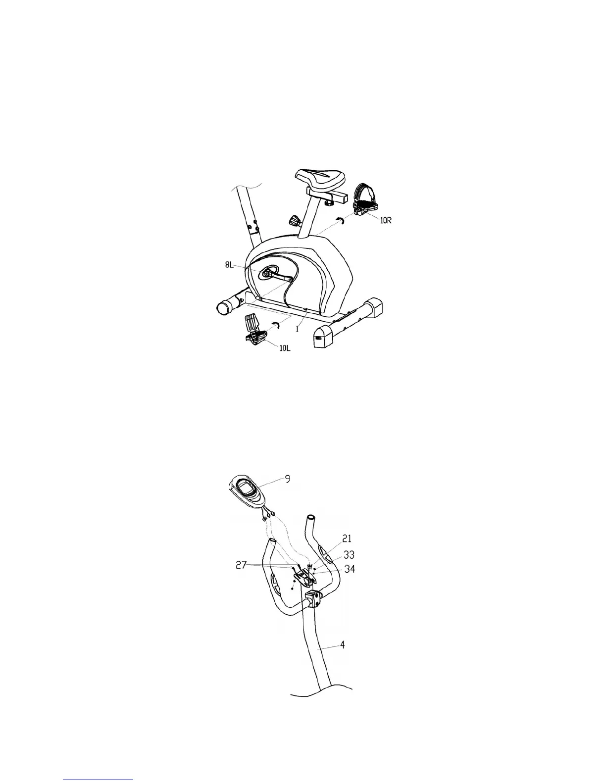 Attach the right and left pedals (10L/R) to the crank (8L/R). The right pedal (10R) should