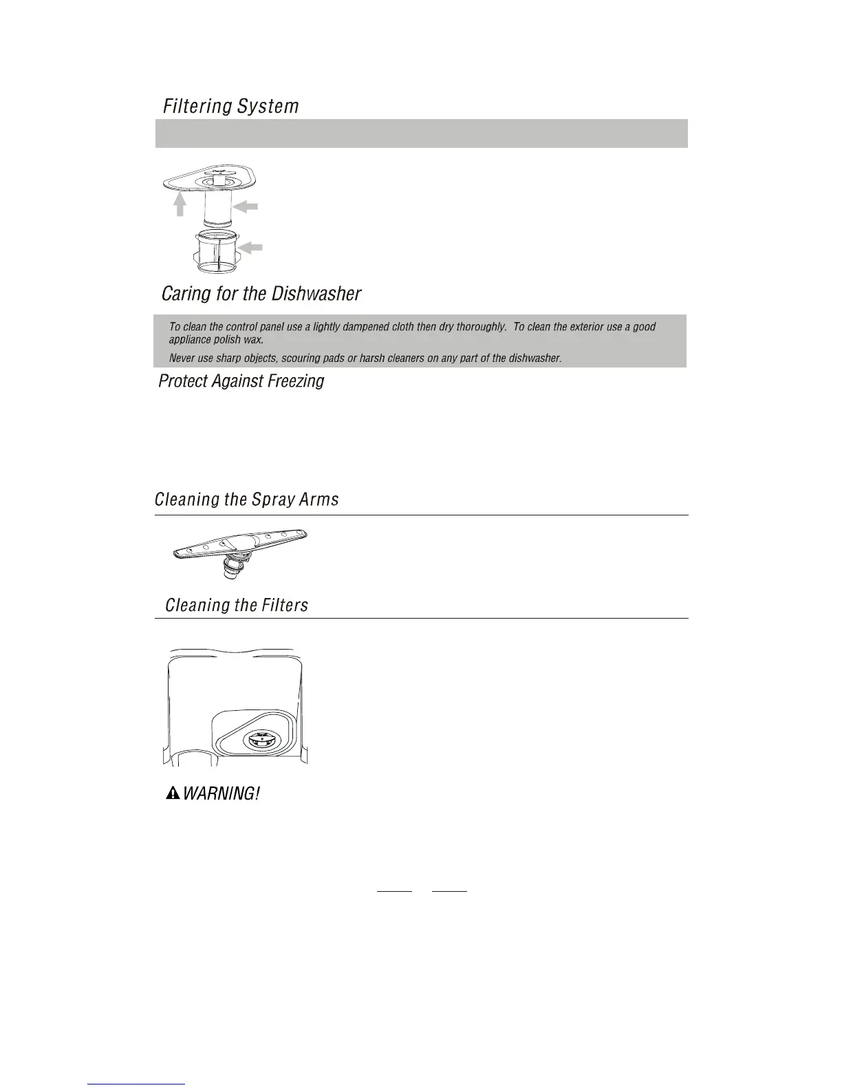 The dishwasher must never be used without the filters. Improper replacement of the