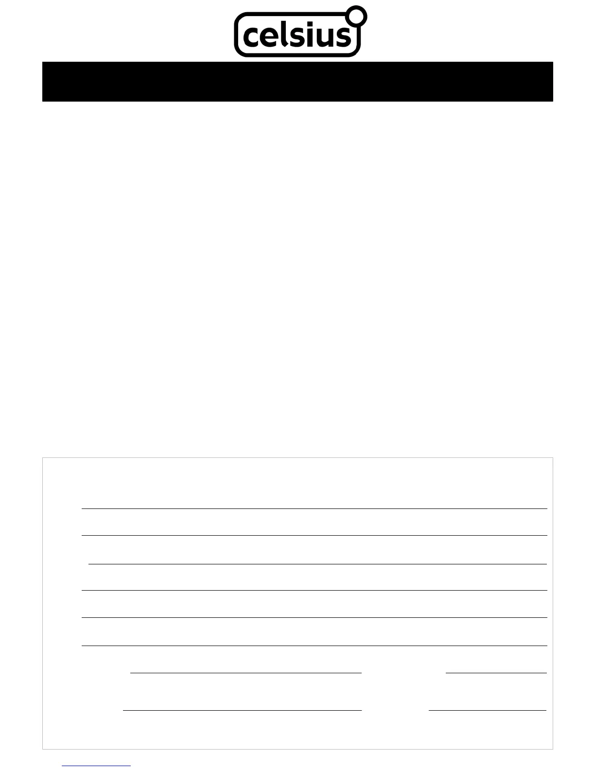 Celsius One Year Warranty (IMPORTANT: Please complete and retain this warranty card)