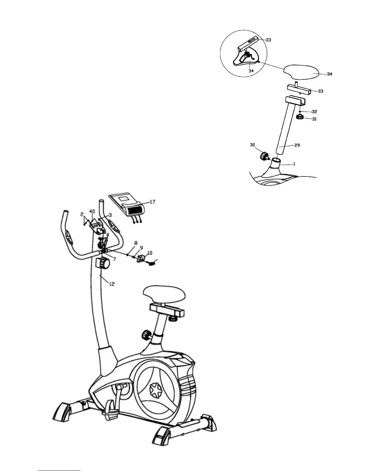 Attach the Saddle (34) to the Horizontal seat post (33),