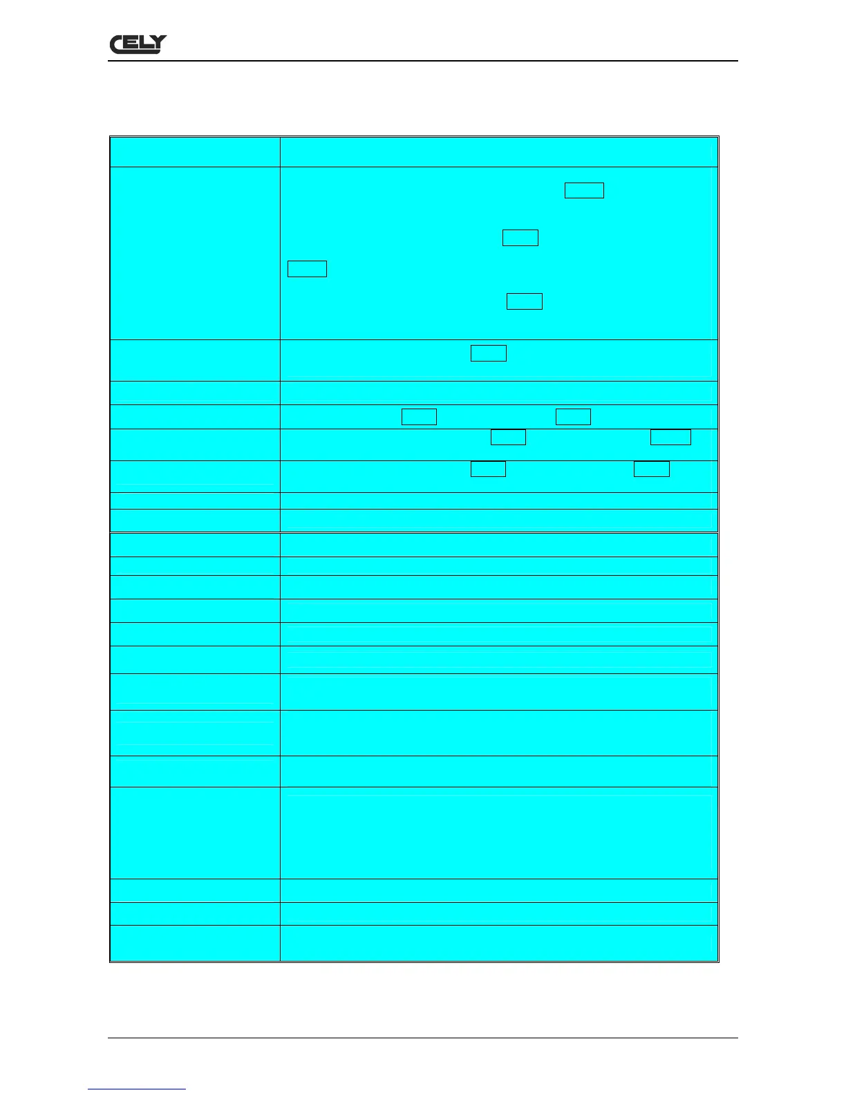 PARAMETER SETTING TABLE