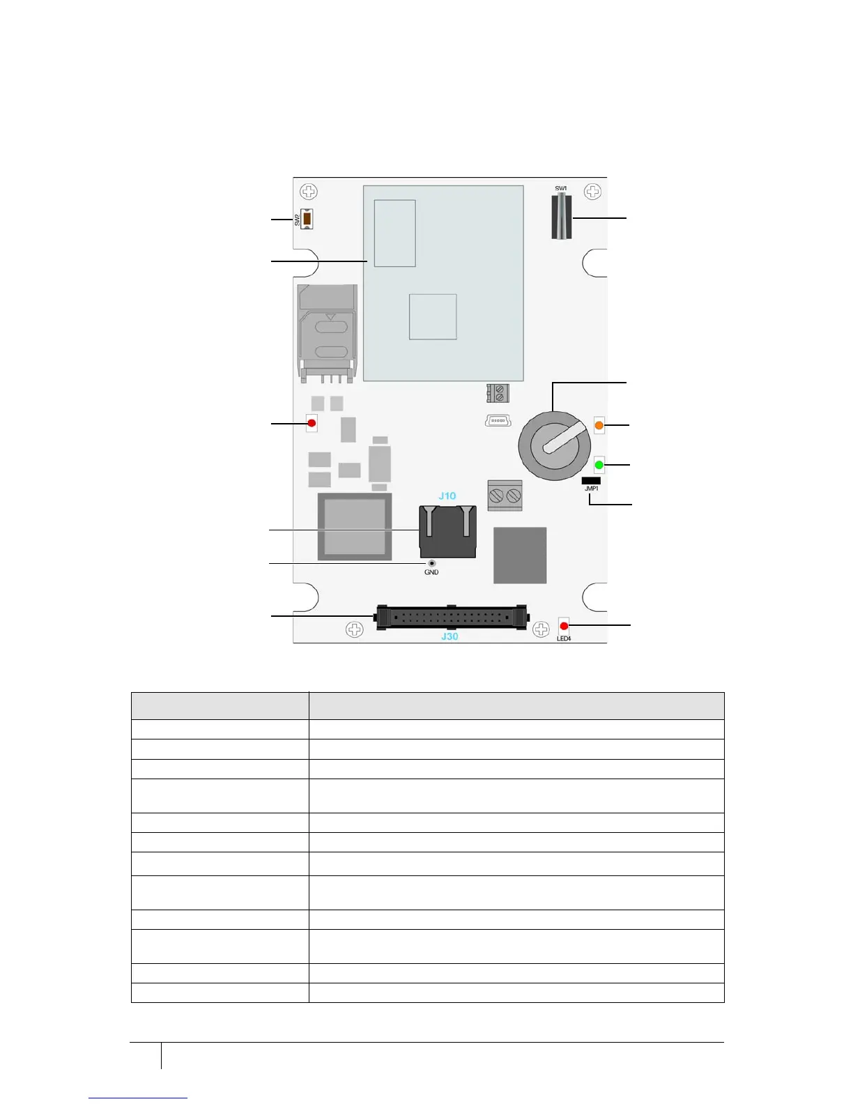 Table 8: Description of front board components