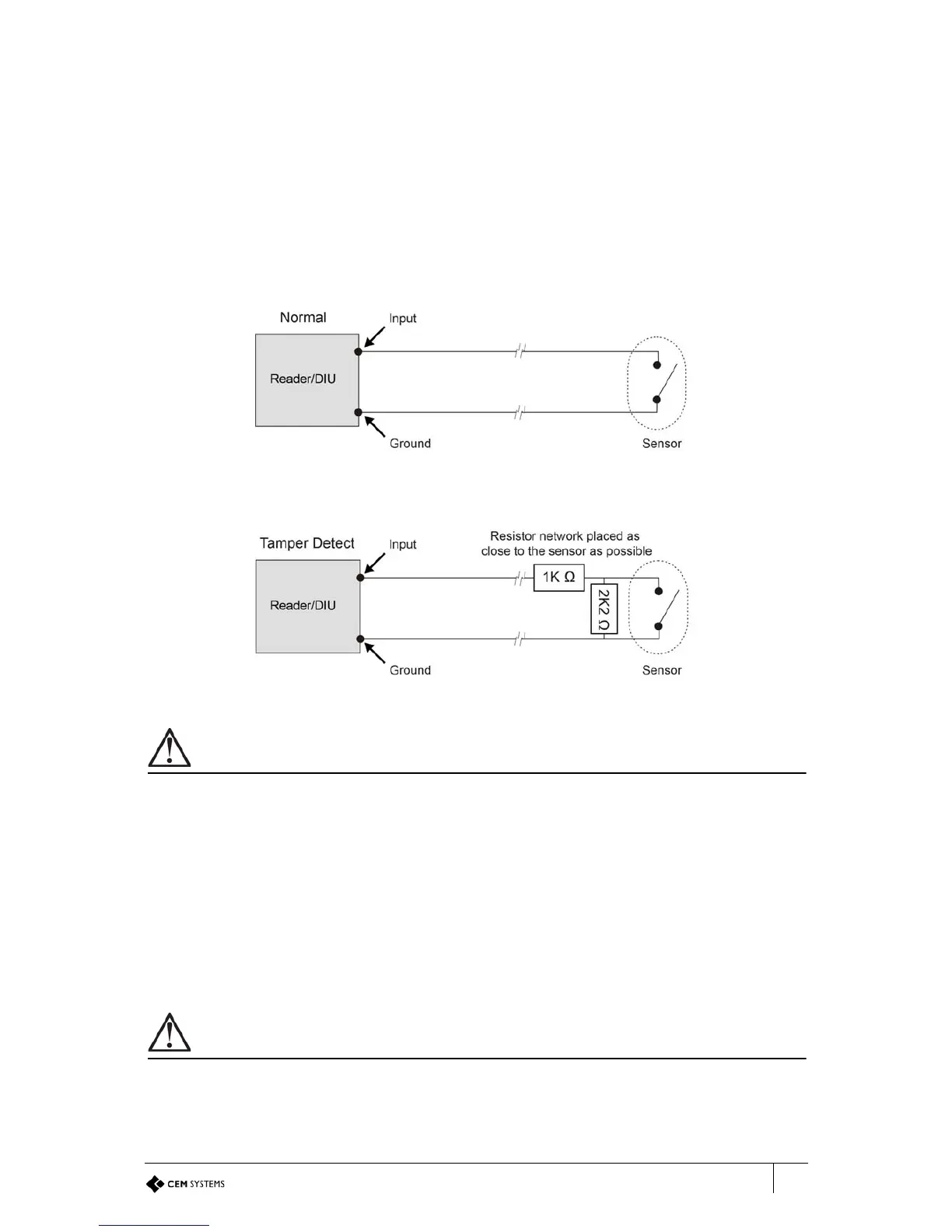 It is imperative that the tamper resistor network is wired as close to the sensor as possible.