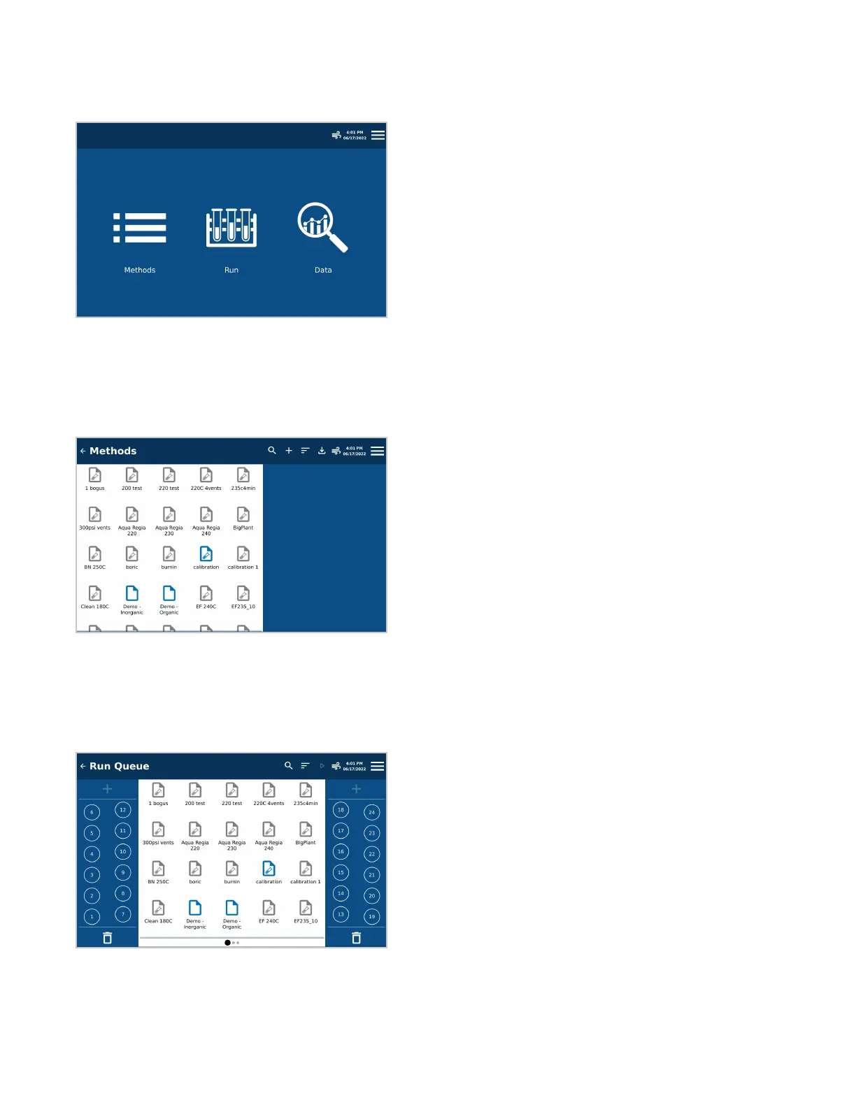 Allows the user to queue Methods to be digested and shows the status of currently loaded methods: green when