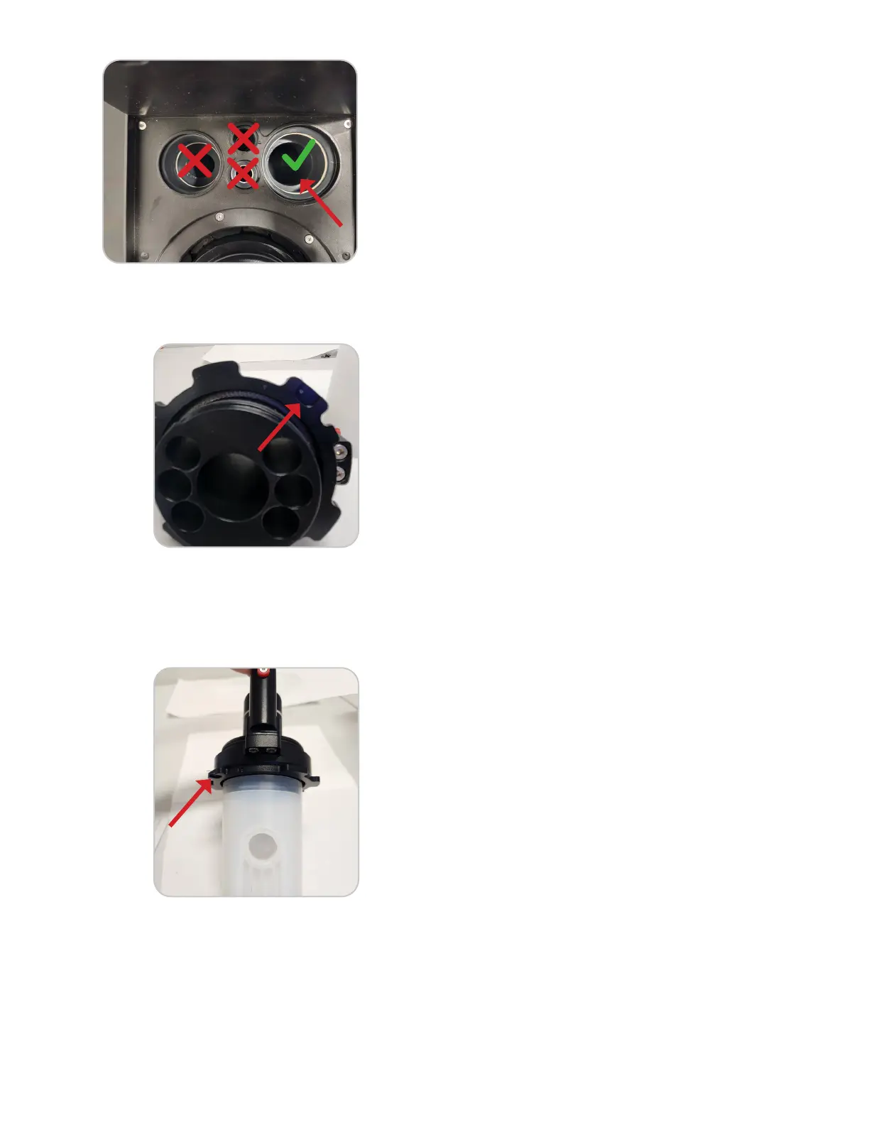 17.4. Push the spill cup onto the attenuator and rotate the spill cup clockwise. Turn until the lens is cen-