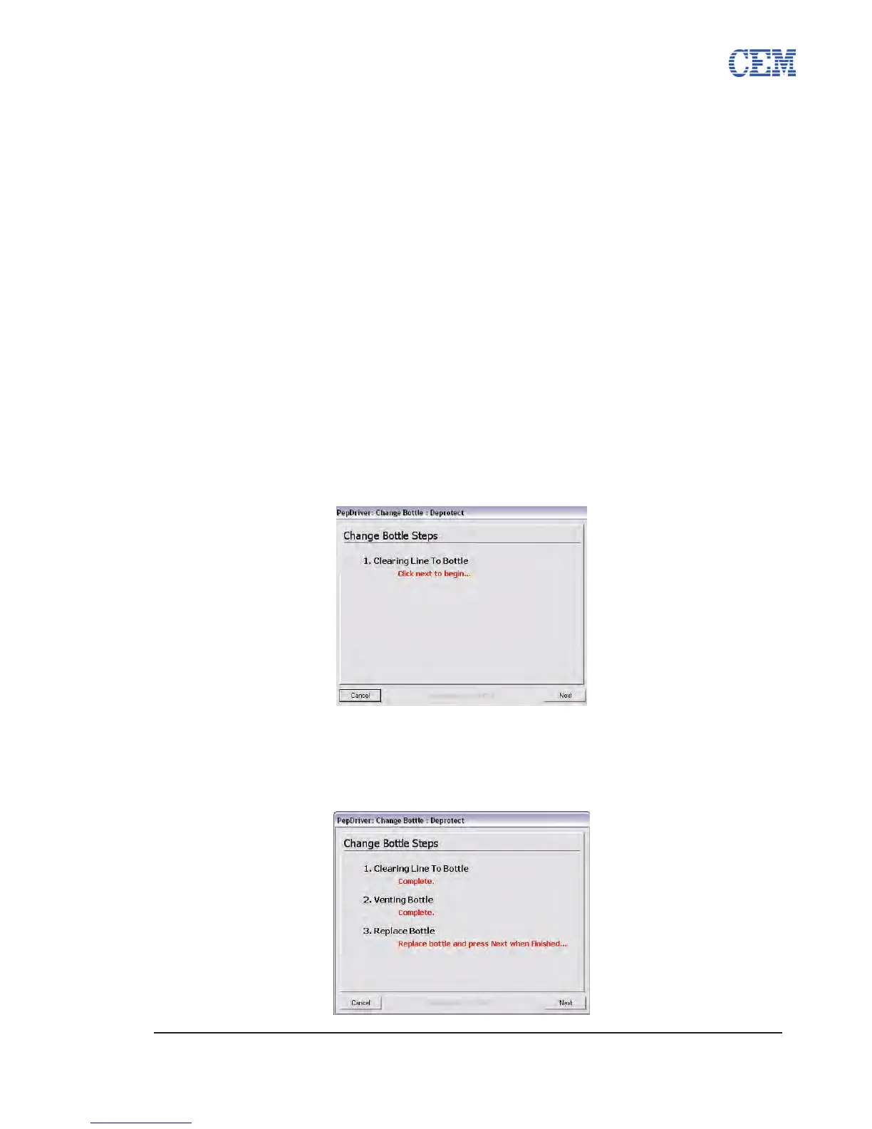 The Change Bottle window will appear. Click Next to begin the Change Bottle 2.