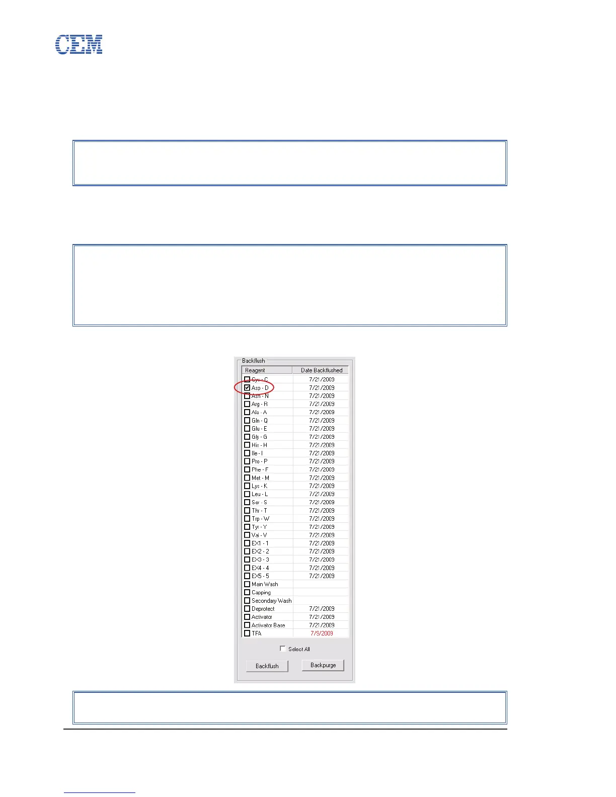 Main Wash (DMF) and Secondary Wash (DCM) should not be backushed.