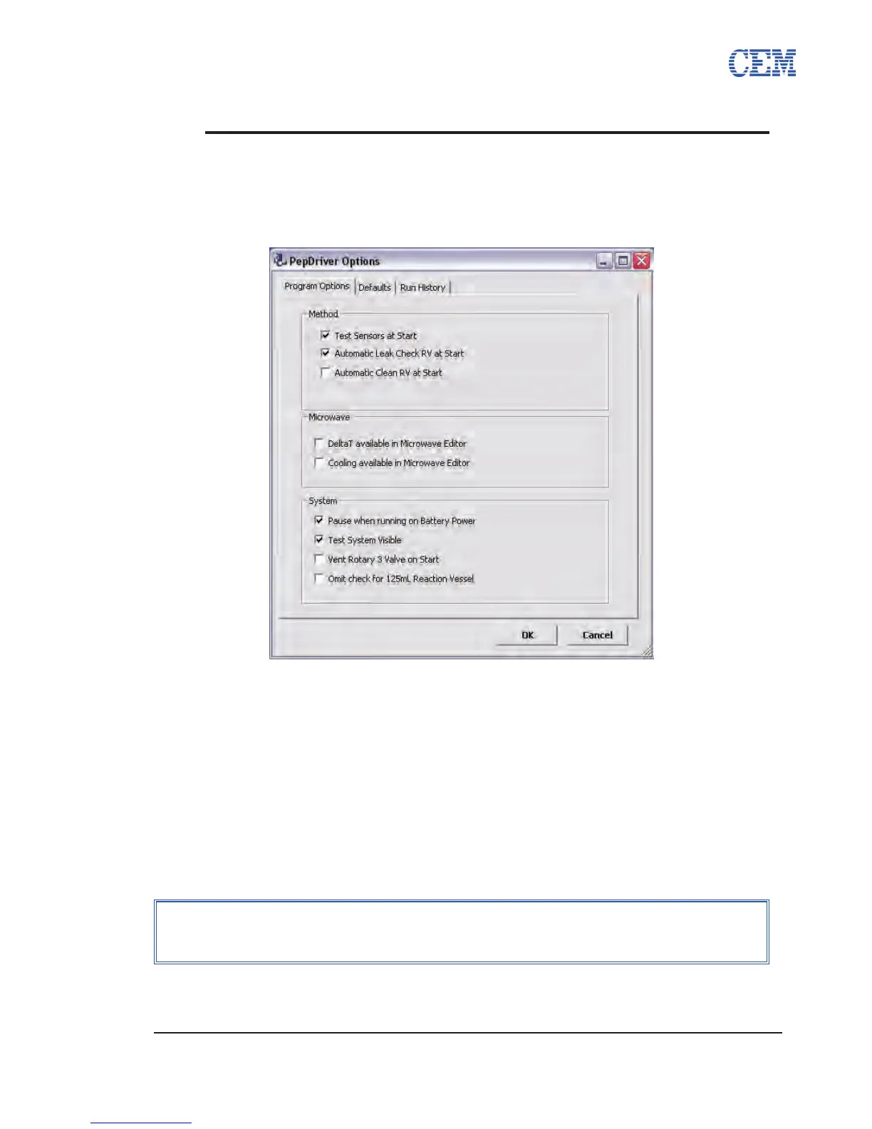The Options Menu can be accessed by clicking the Setup button from the PepDriver main screen