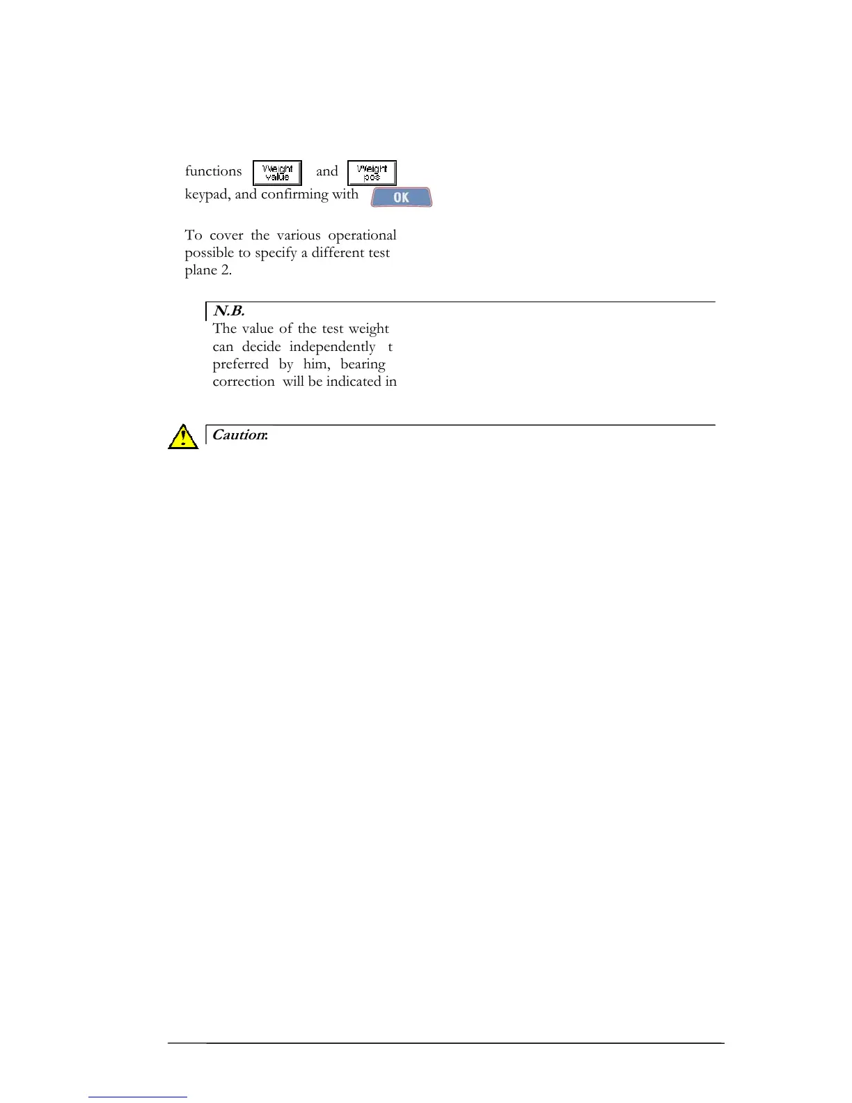 The value of the test weight should be indicated in general units U. The operator