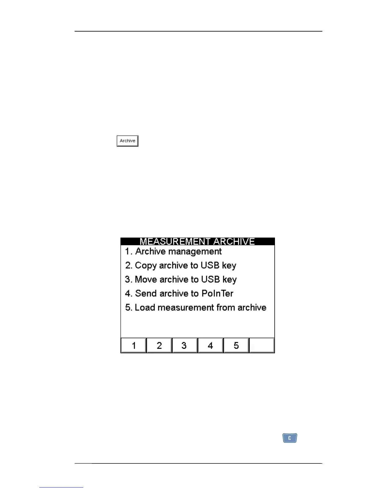Upon pressing a MEASUREMENT ARCHIVE screen appears where it is