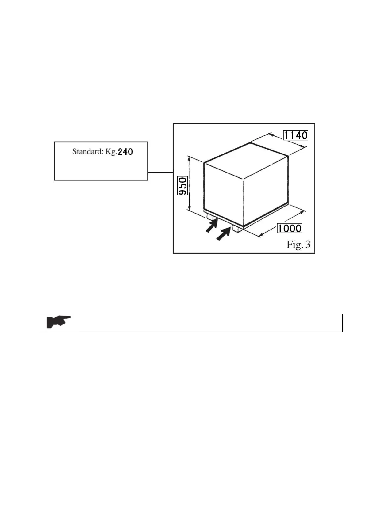 • The packaged machine may be moved by means of a fork lift truck of suitable capacity. Insert