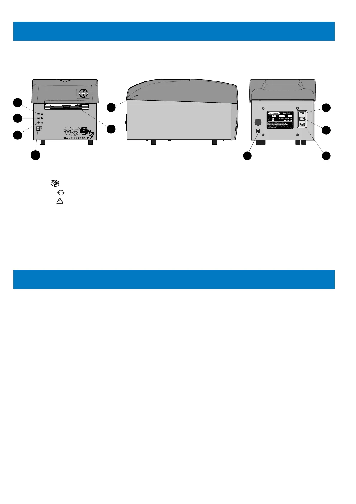 – Presionar el interruptor de red (9) colocado en la parte trasera de la impresora. Seguirá una fase de inicialización.