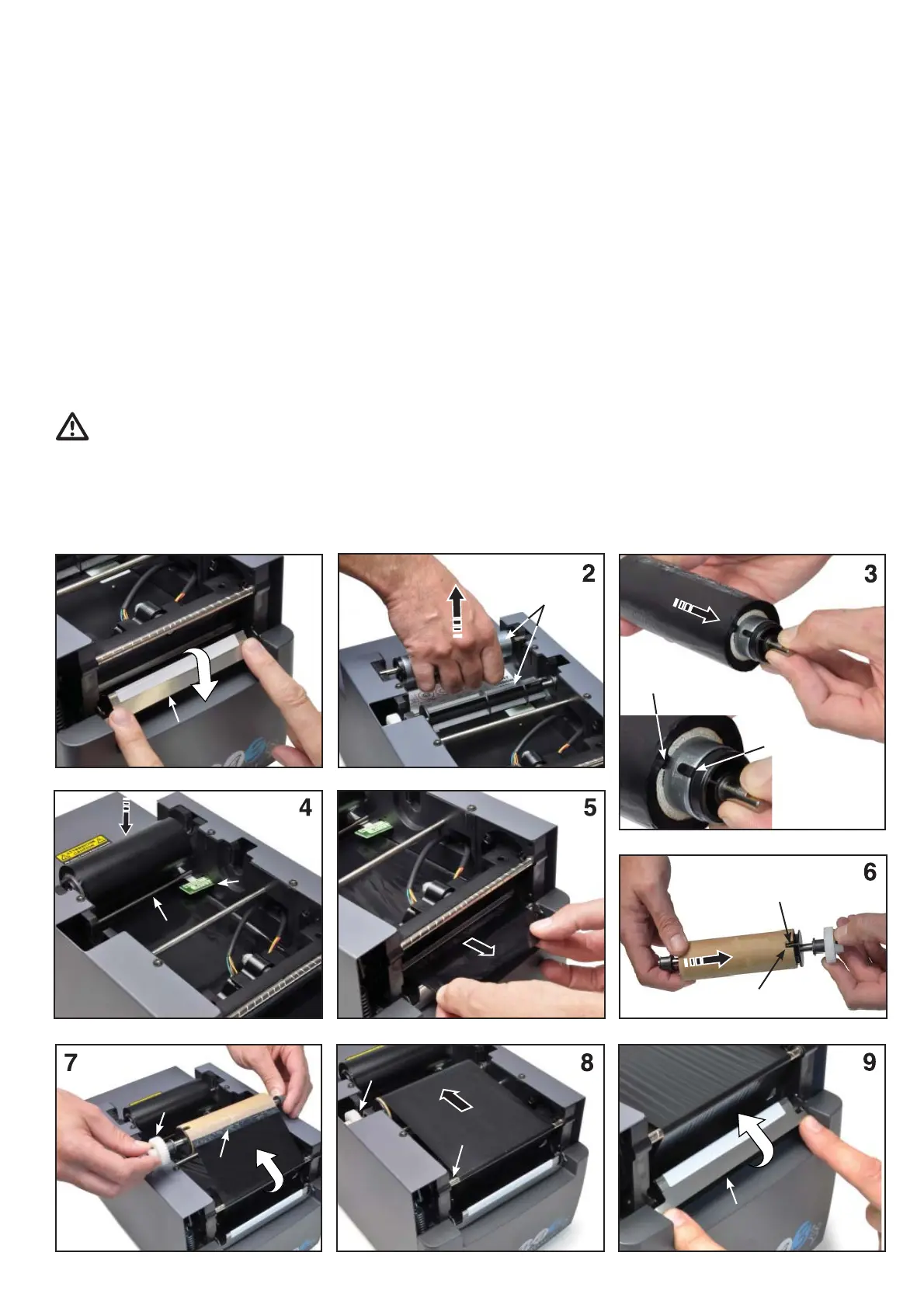 • Consigliamo di arrotolare perfettamente per alcuni giri il nastro di stampa sull’anima di cartone per ottenere un corretto riavvol-