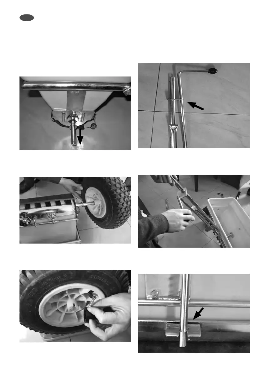 b. Retourner l’épandeur sur ses roues. Monter
