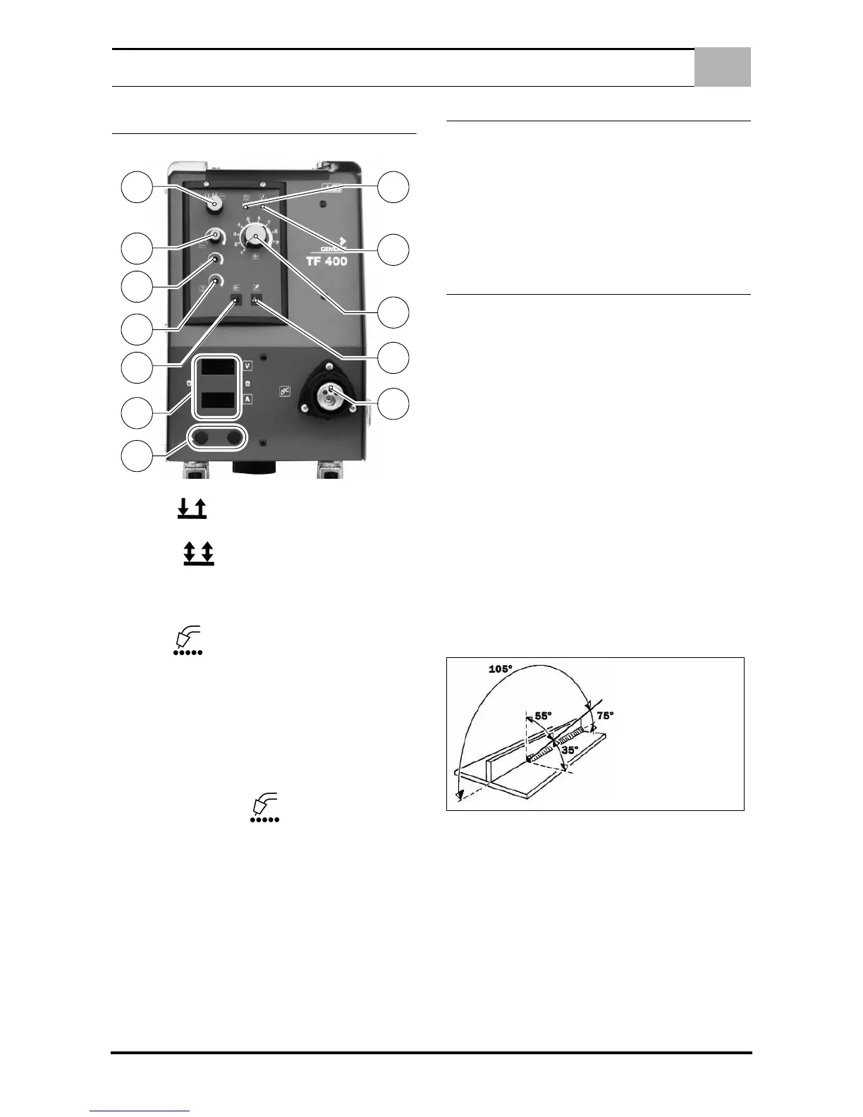 2. Stel de lasstroom in met behulp van de schakelaar (Ref. 23