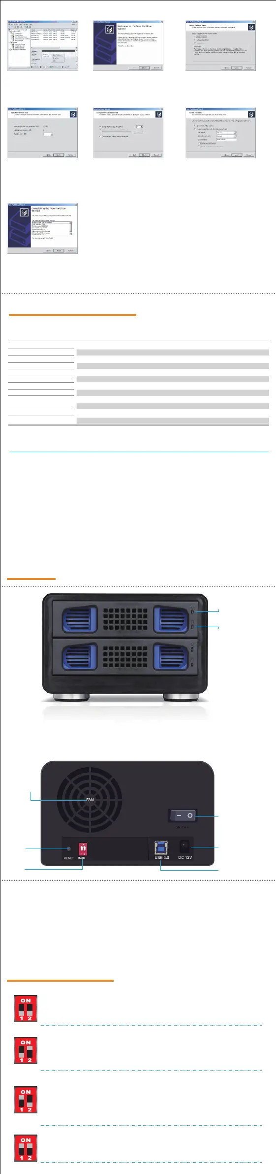 RAID 0, RAID 1, JBOD, NORMAL