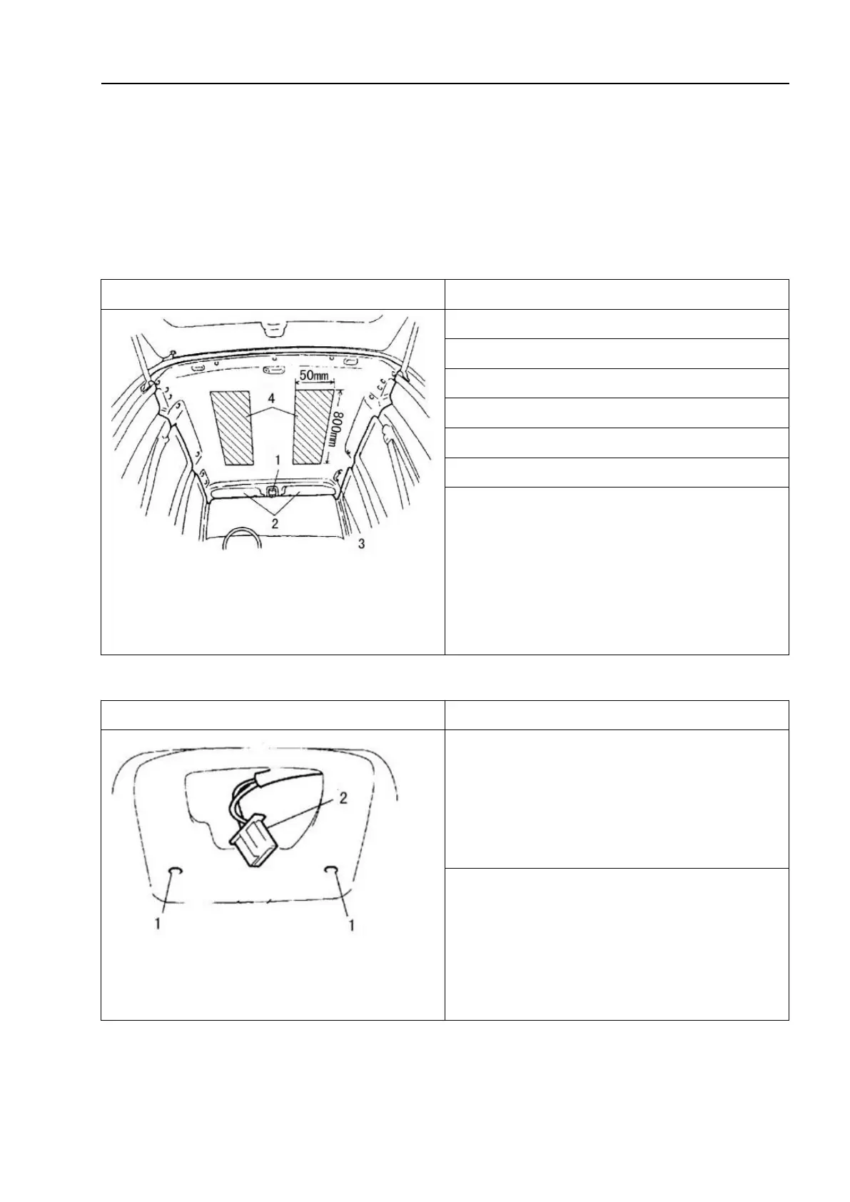 1 - Mounting holes of spotlight; 2-Spotlight
