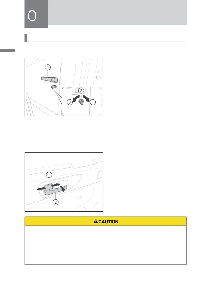 • The door must be locked with a key outside the vehicle. It is forbidden to use