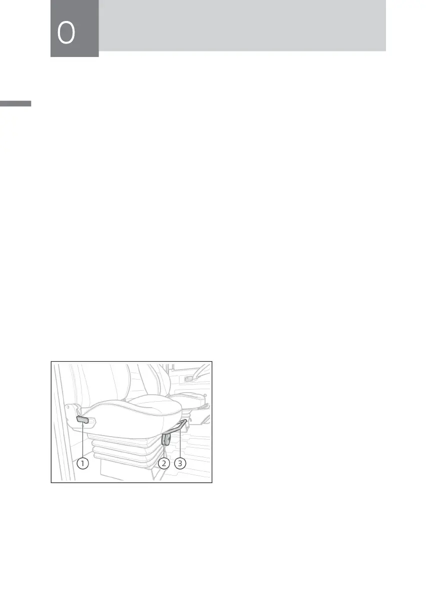 1. Pull up the seat longitudinal slide adjustment lever ③ . Sit on the seat and move