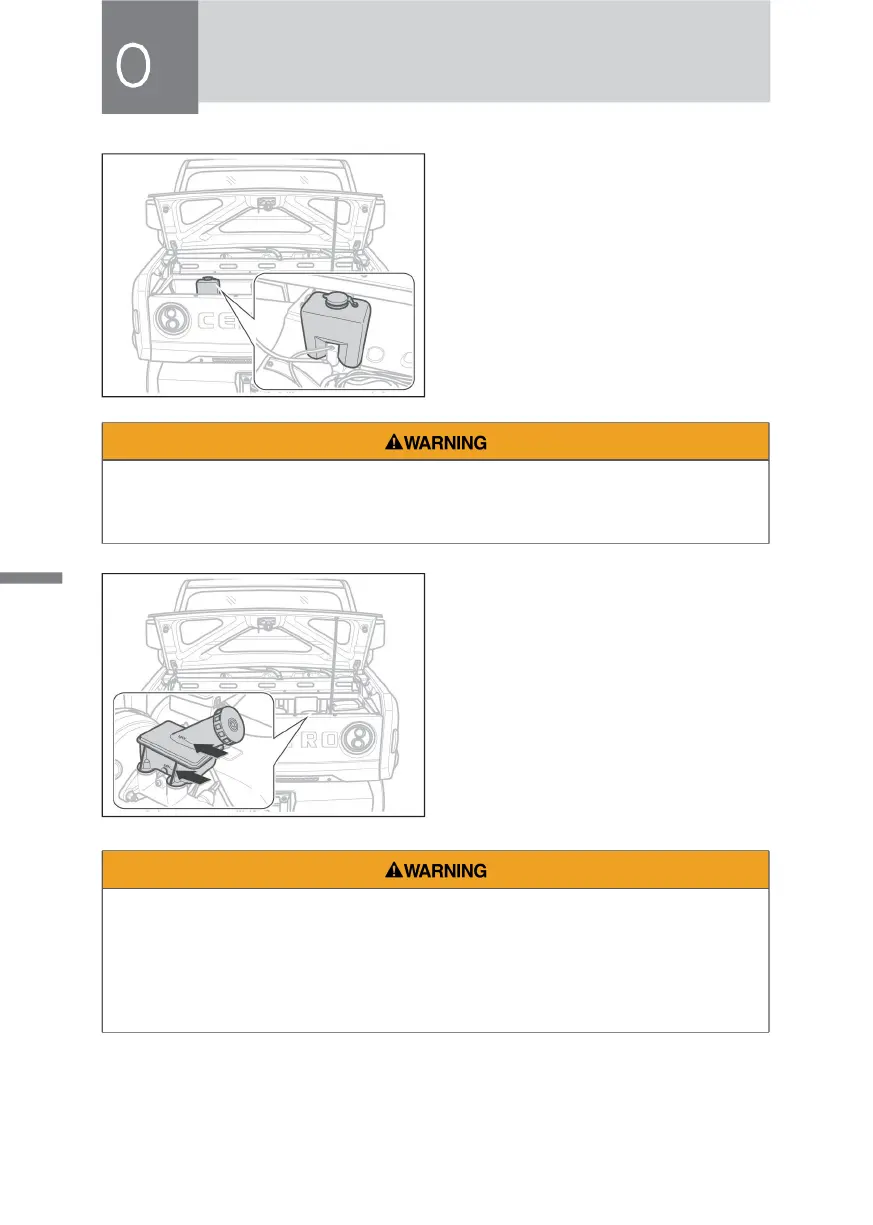 • Do not add any additives to the windshield detergent, or use other liquids to