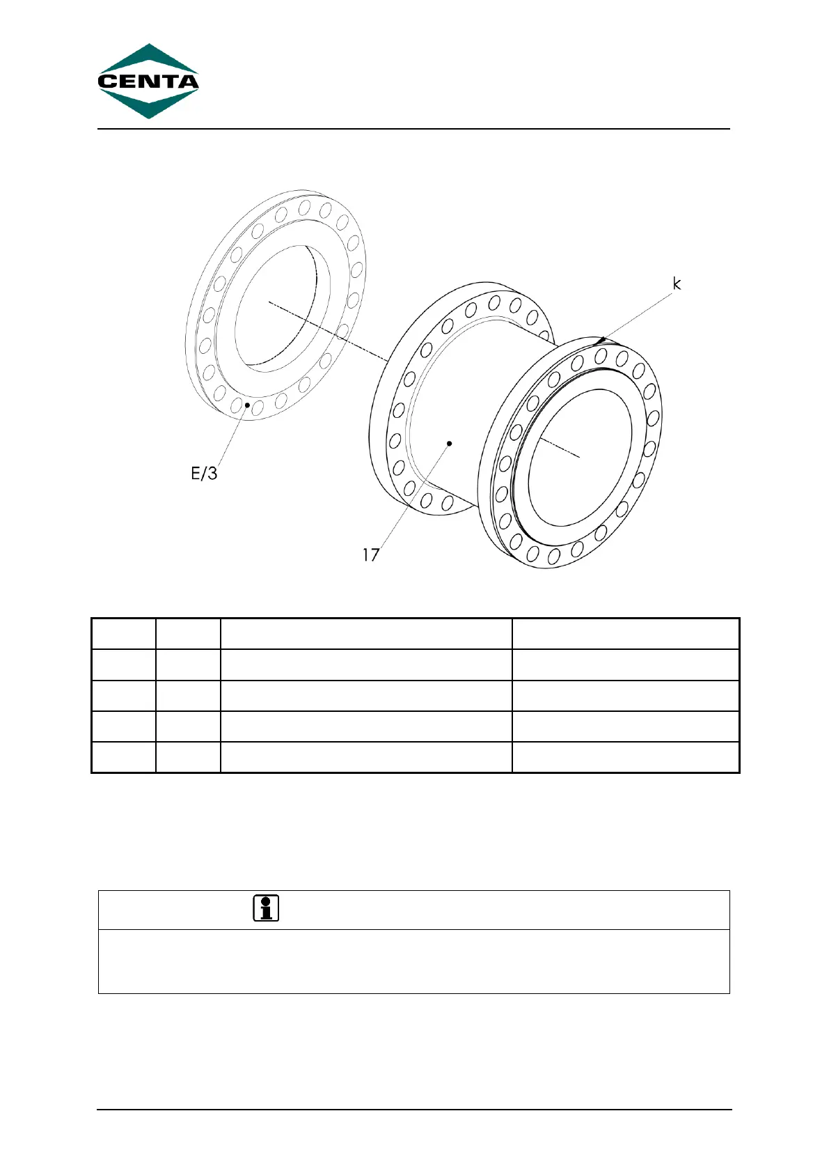 Screw the adapter (17) to the flange/hub (E/3). The screwing can be taken