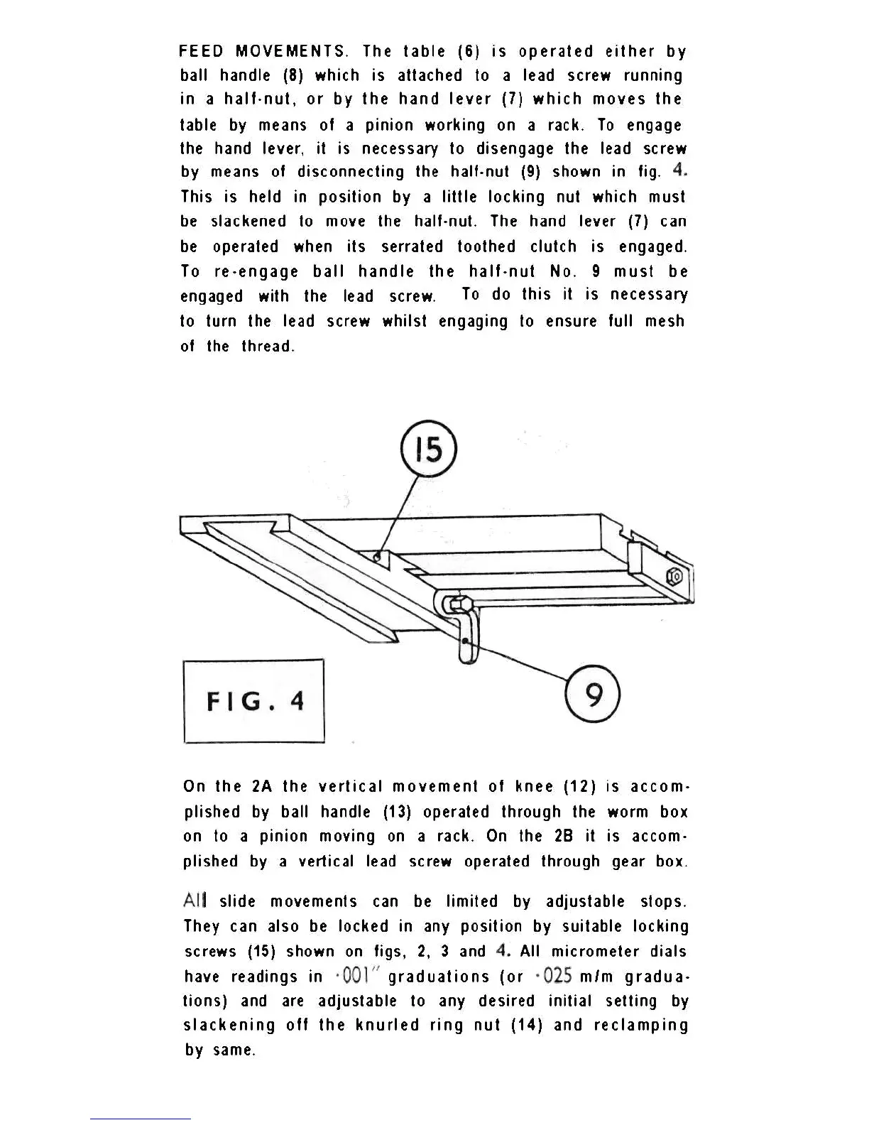 Centec 2A - Feed Movements; Table Feed Operation; Vertical Movement and Stops