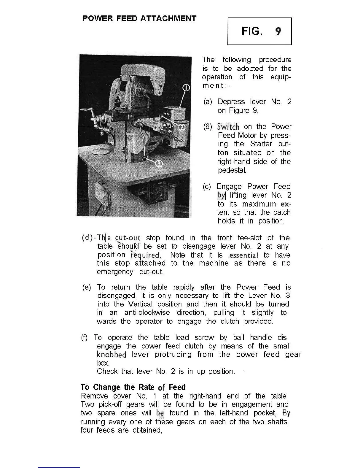 Centec 2A - Power Feed Attachment; Power Feed Operation Procedure; Changing the Rate of Feed