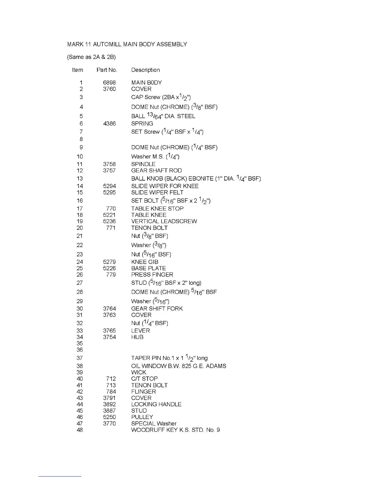 Centec 2B - Parts Identification; Mark 11 Automill Main Body Assembly