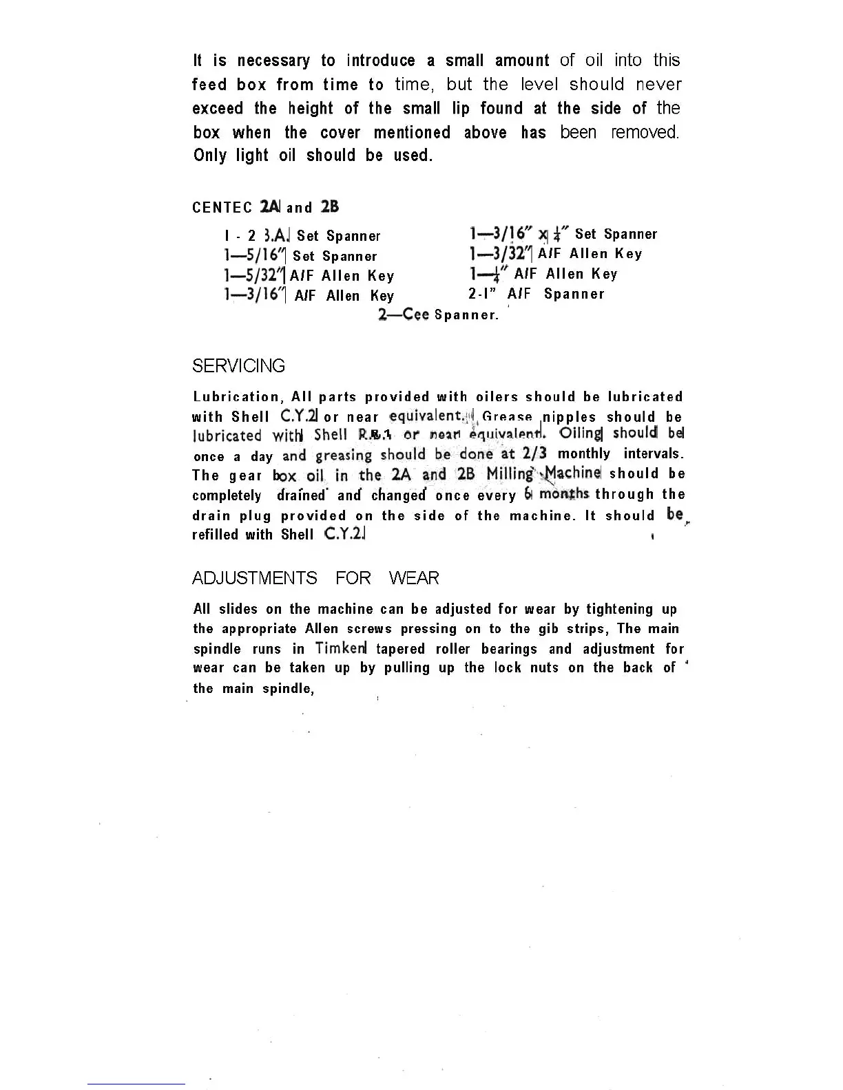 Centec 2B - Maintenance and Servicing; Servicing; Adjustments for Wear