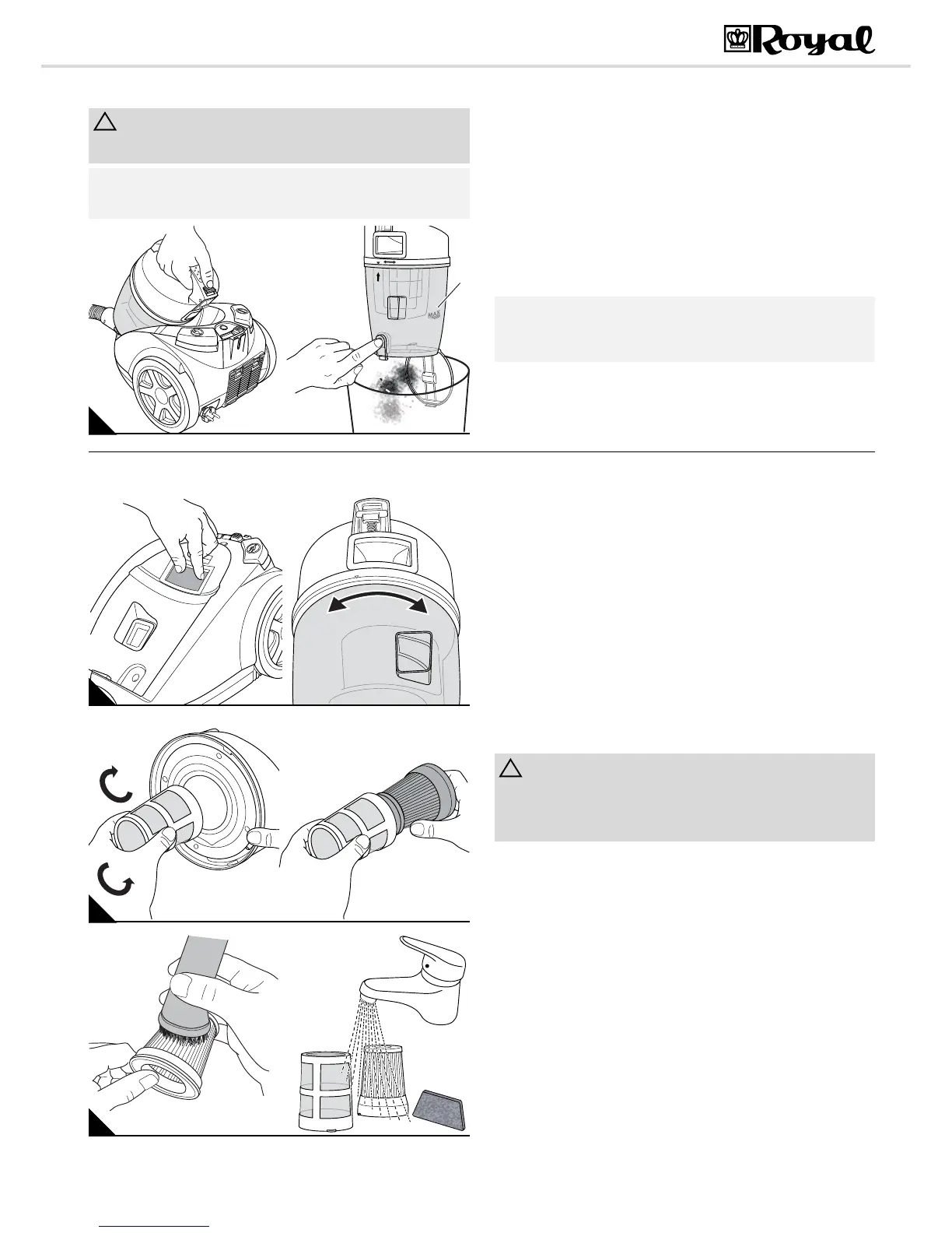 2. Plocka ut och töm dammbehållaren, Zkapitel 5.1, "Tömning och rengö-