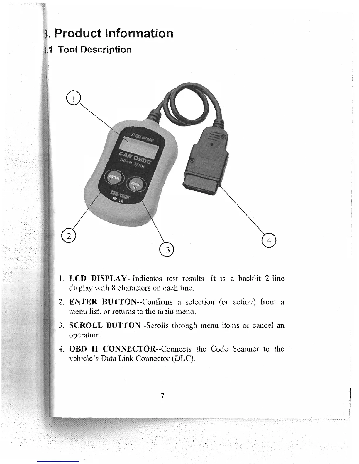 Centech CAN OBD II - 3. Product Information; 3.1 Tool Description