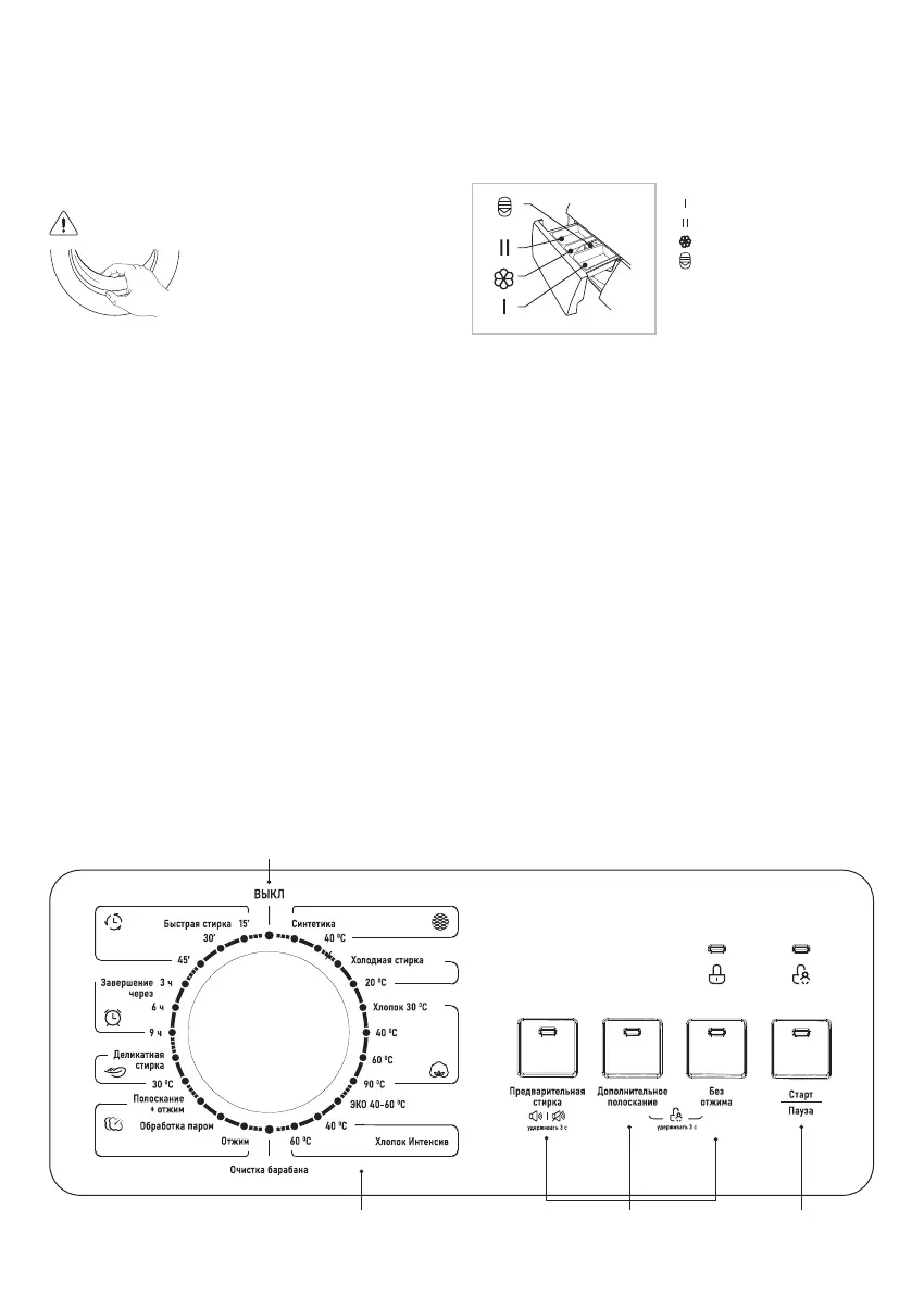 1. I-бөлік (оң жақта) алдын ала жуу үшін жуғыш заттарды қосуға арналған.