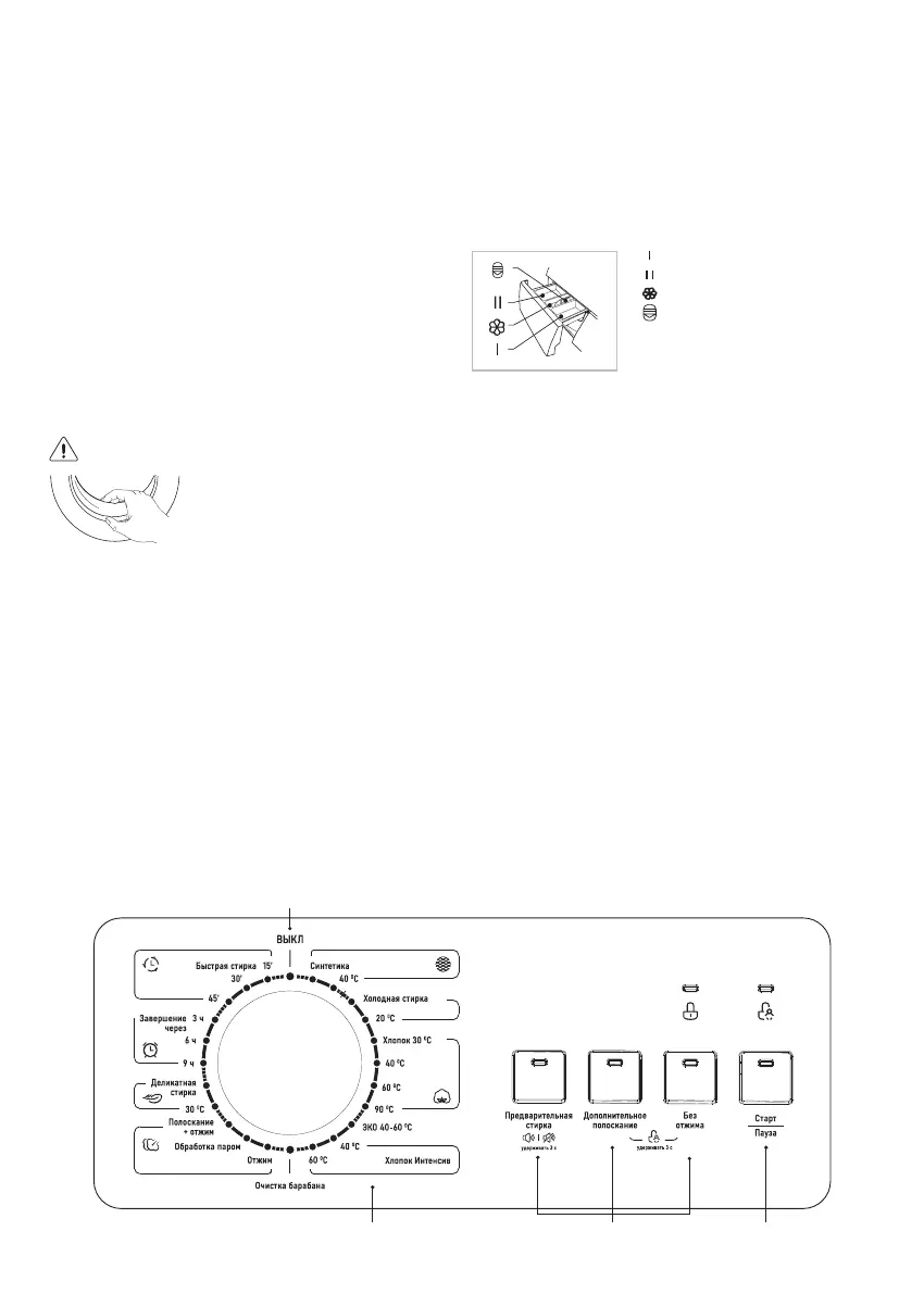 1. Отсек I (справа) предназначен для добавления моющих средств для пред-