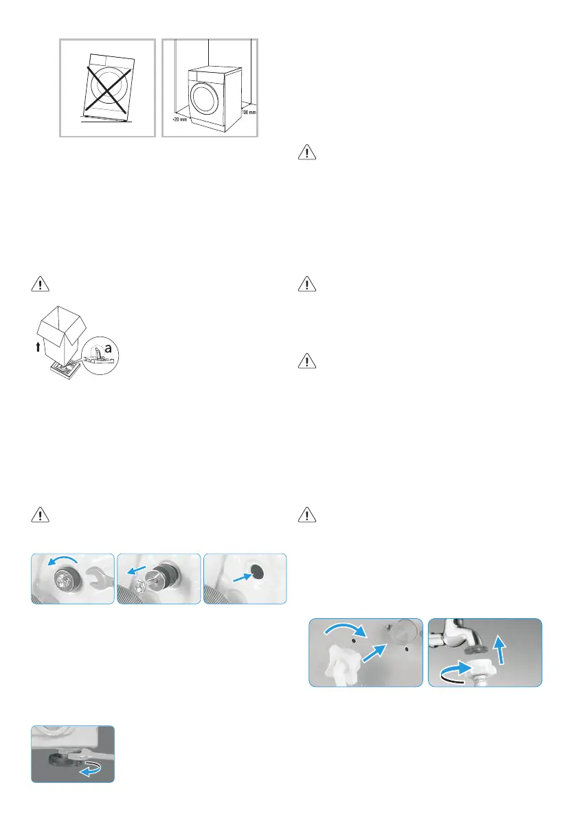 2. Lift the washing machine and remove the packaging from its base. Ensure that