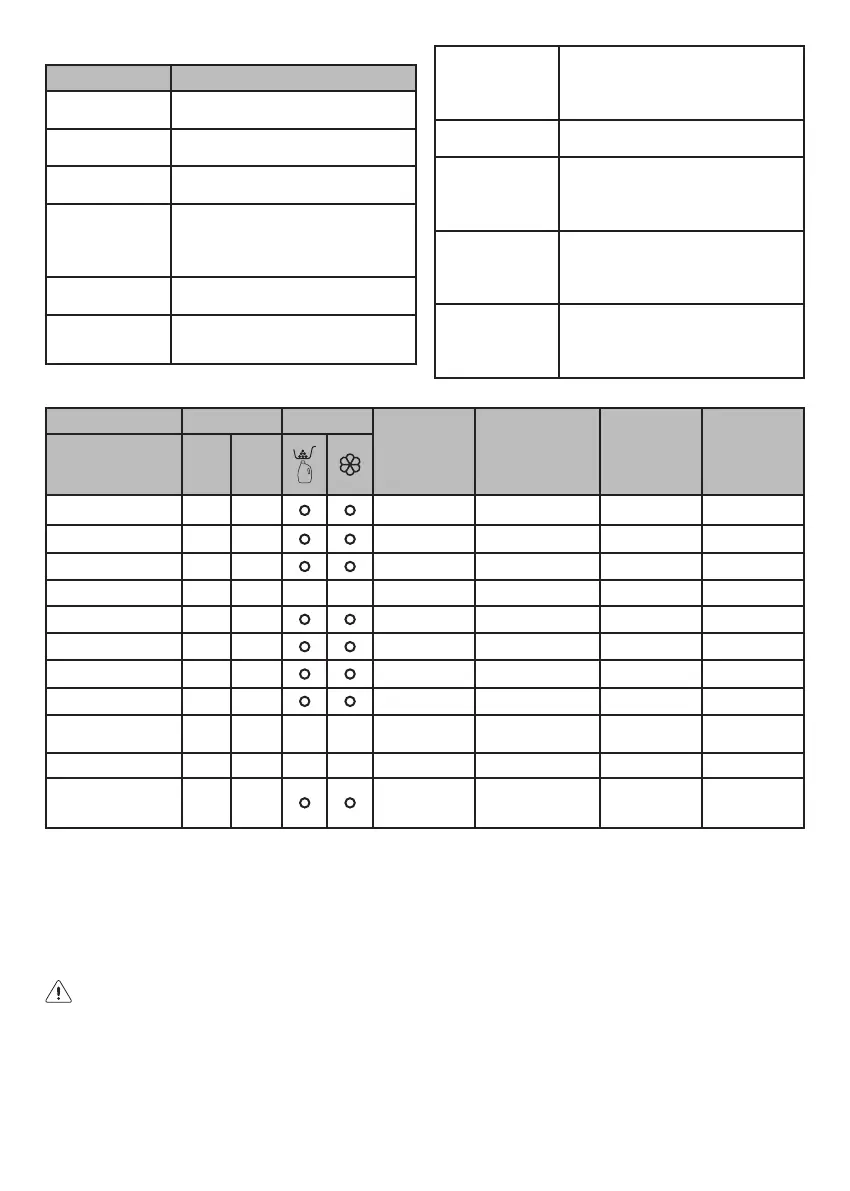 SUMMARY TABLE OF WASHING PROGRAM PARAMETERS