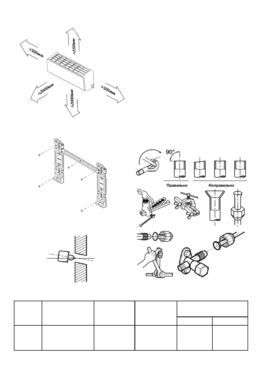 УСТАНОВОЧНЫЕ РАЗМЕРЫ ВНУТРЕННЕГО БЛОКА ВЫПОЛНЕНИЕ ОТВЕРСТИЯ В СТЕНЕ