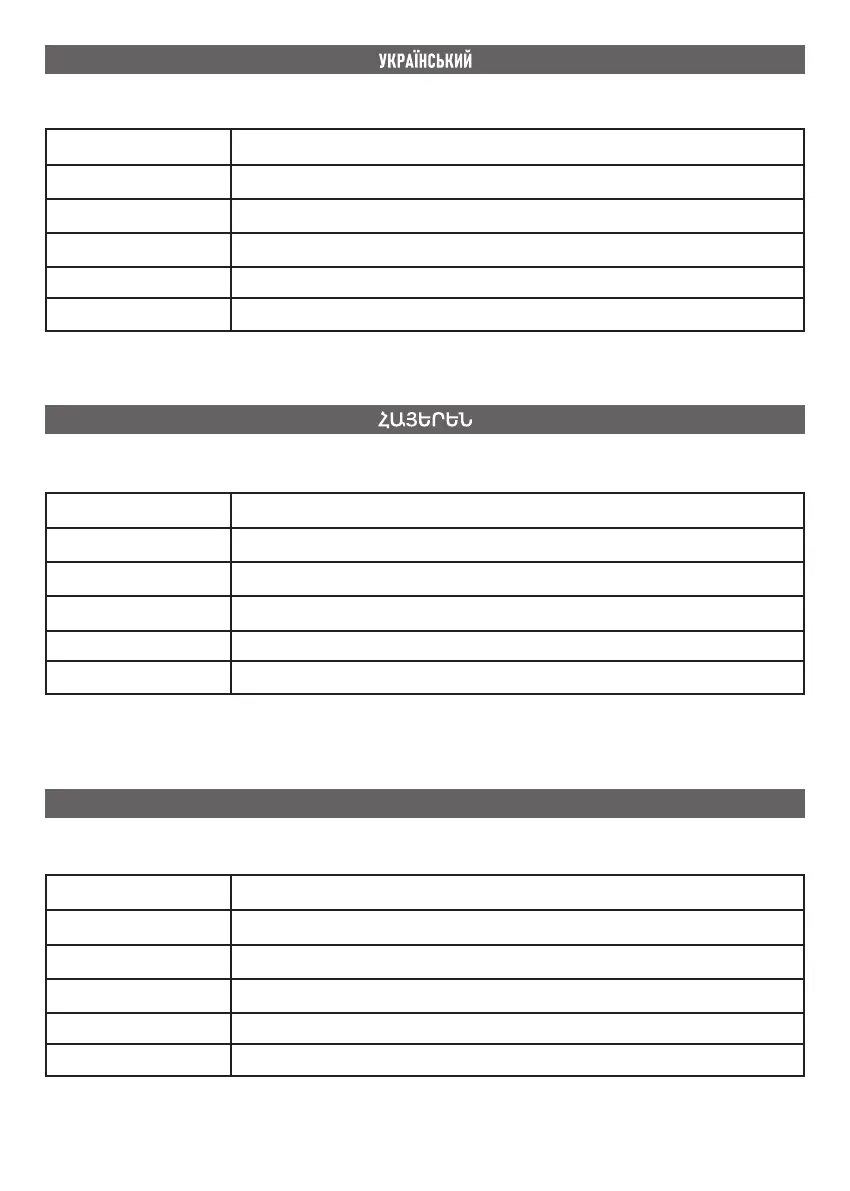 TABLE OF FAULT CODES