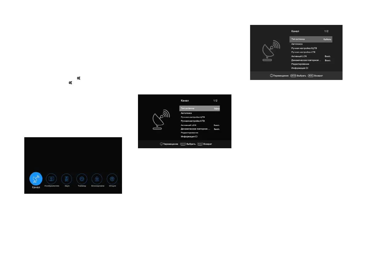 • Тип антенны: нажимайте кнопки ▲/▼ для выбора типа антенны.