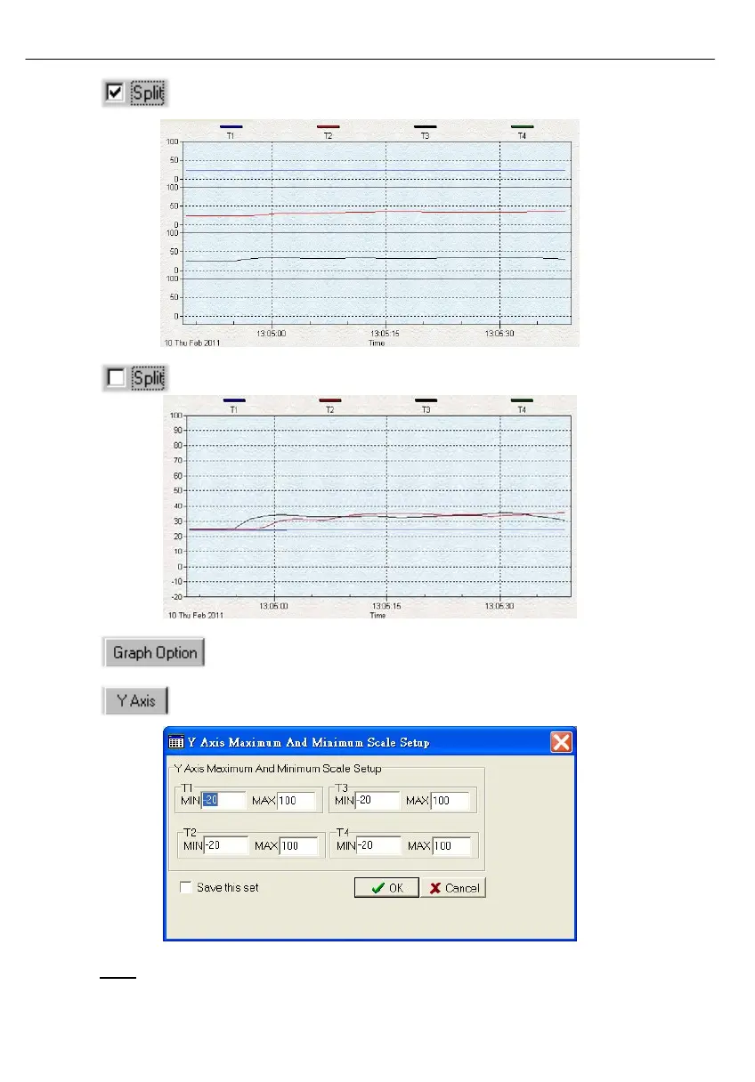 Note: When the Split is unchecked, graph will use T1 as the Y axis display range.