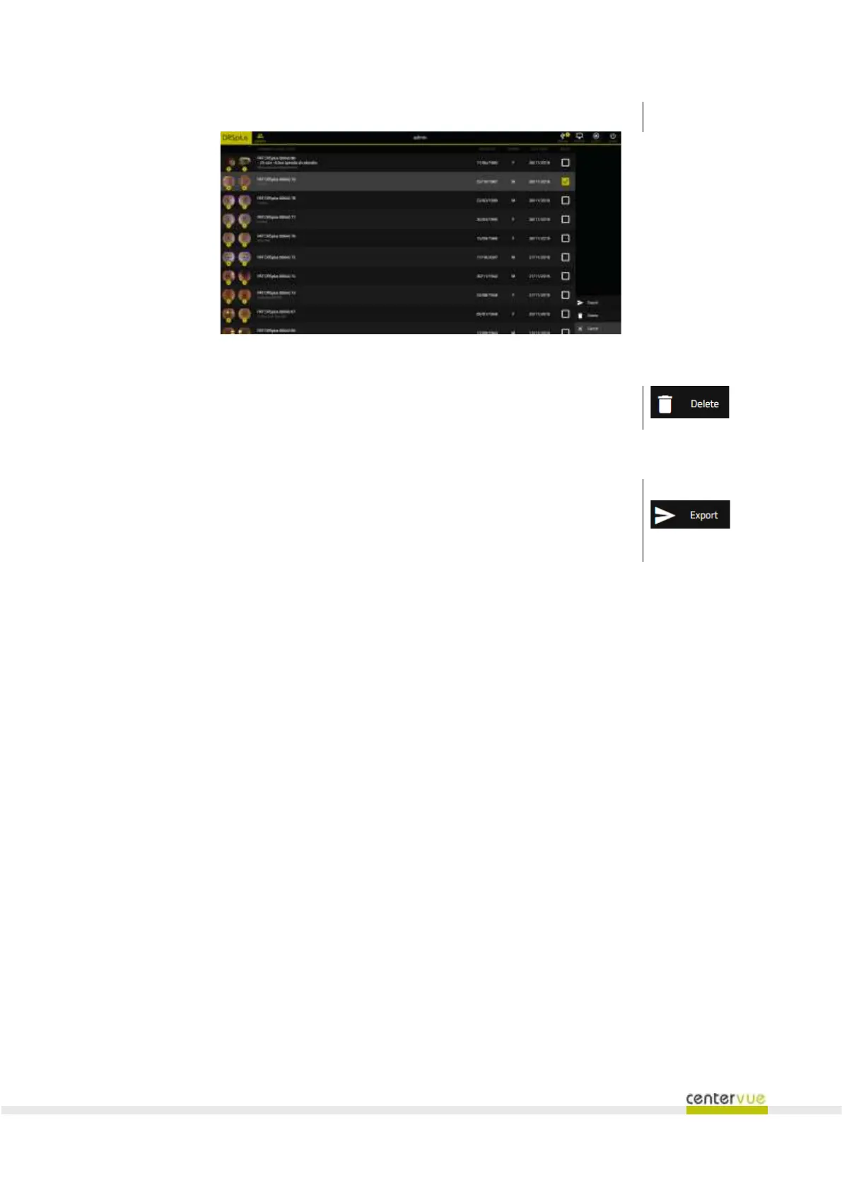 CenterVue drs plus - Deleting Patient Records; Exporting Patient Images