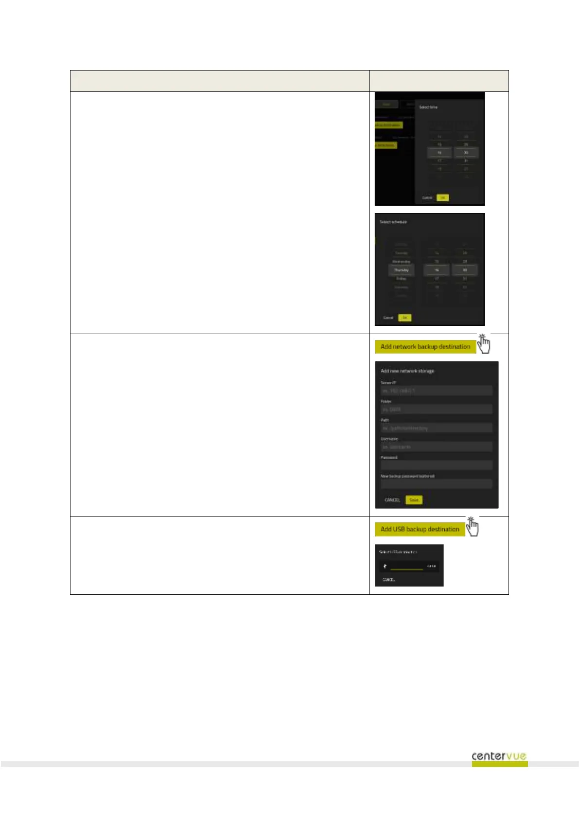 Activation of automatic backup utility and setting of frequency, day