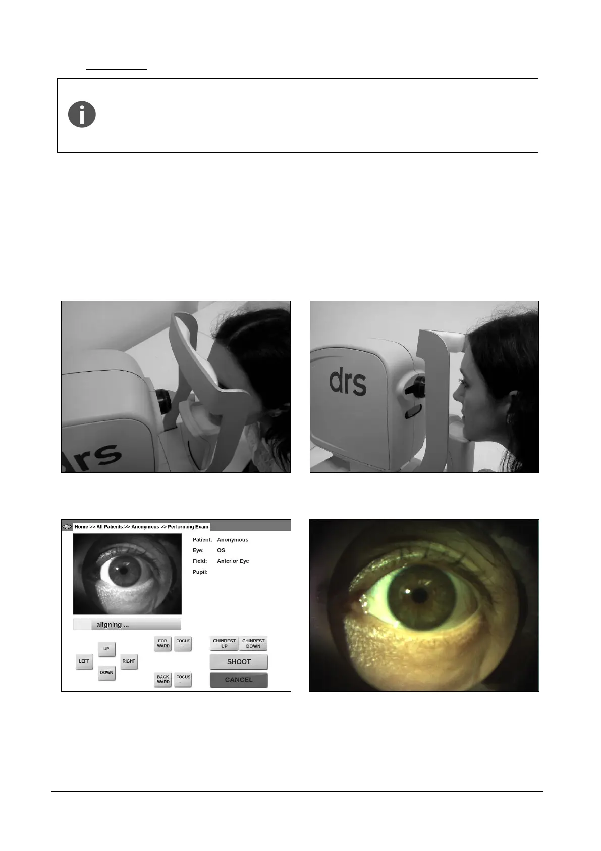 In order to capture a focused image of the anterior part of the eye, the patient’s