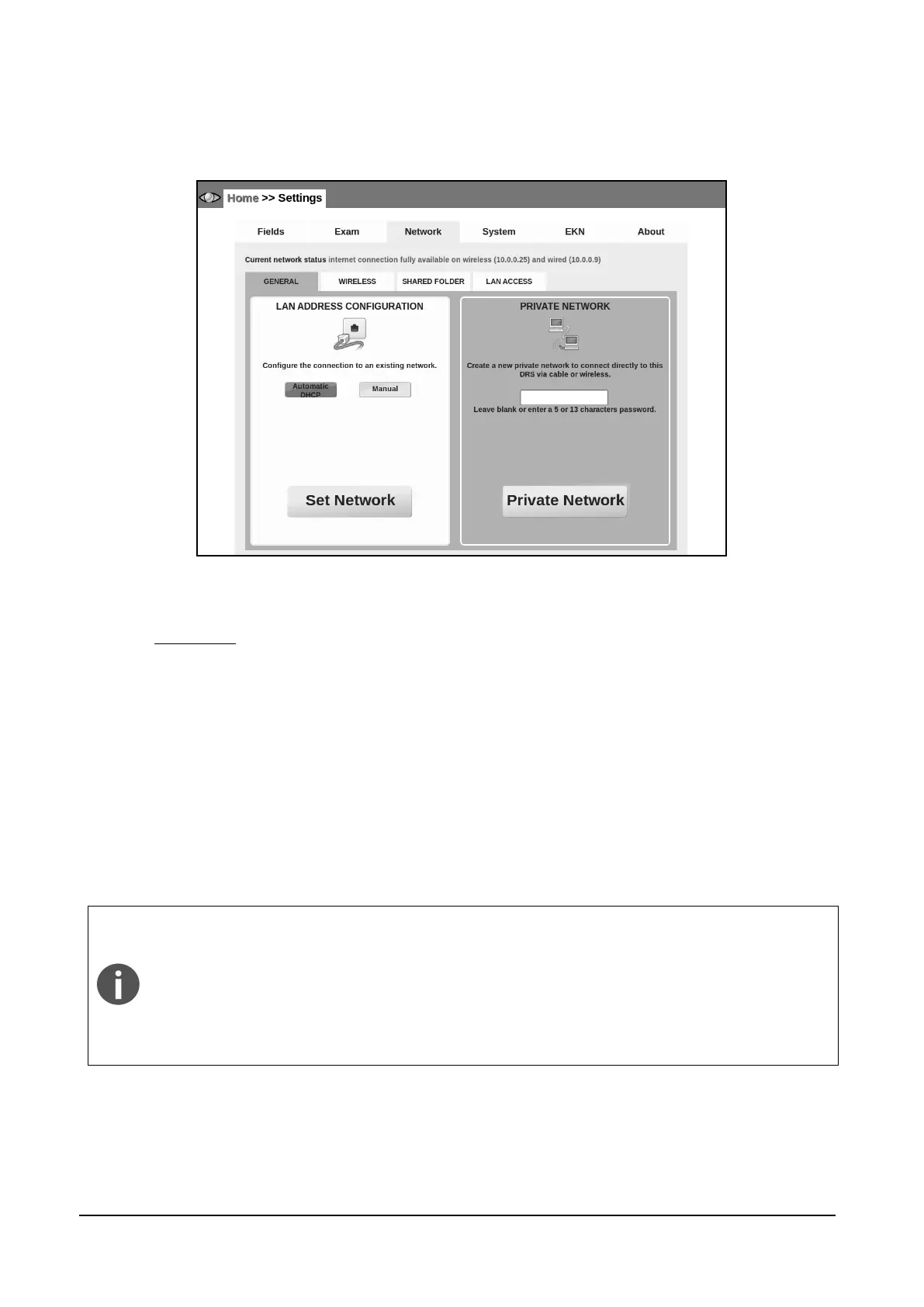 Figure 36 – Network tab in Settings (>> GENERAL)
