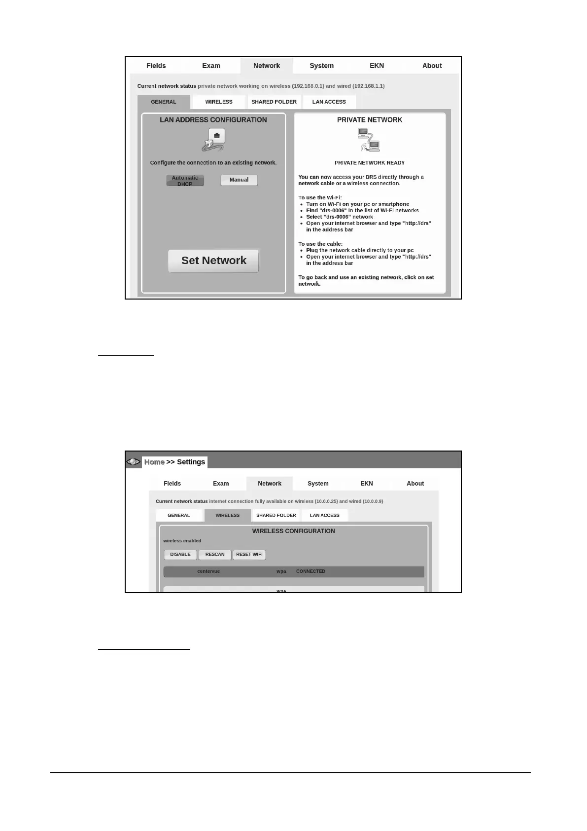 Figure 38 - Network tab in Settings (>> WIRELESS)