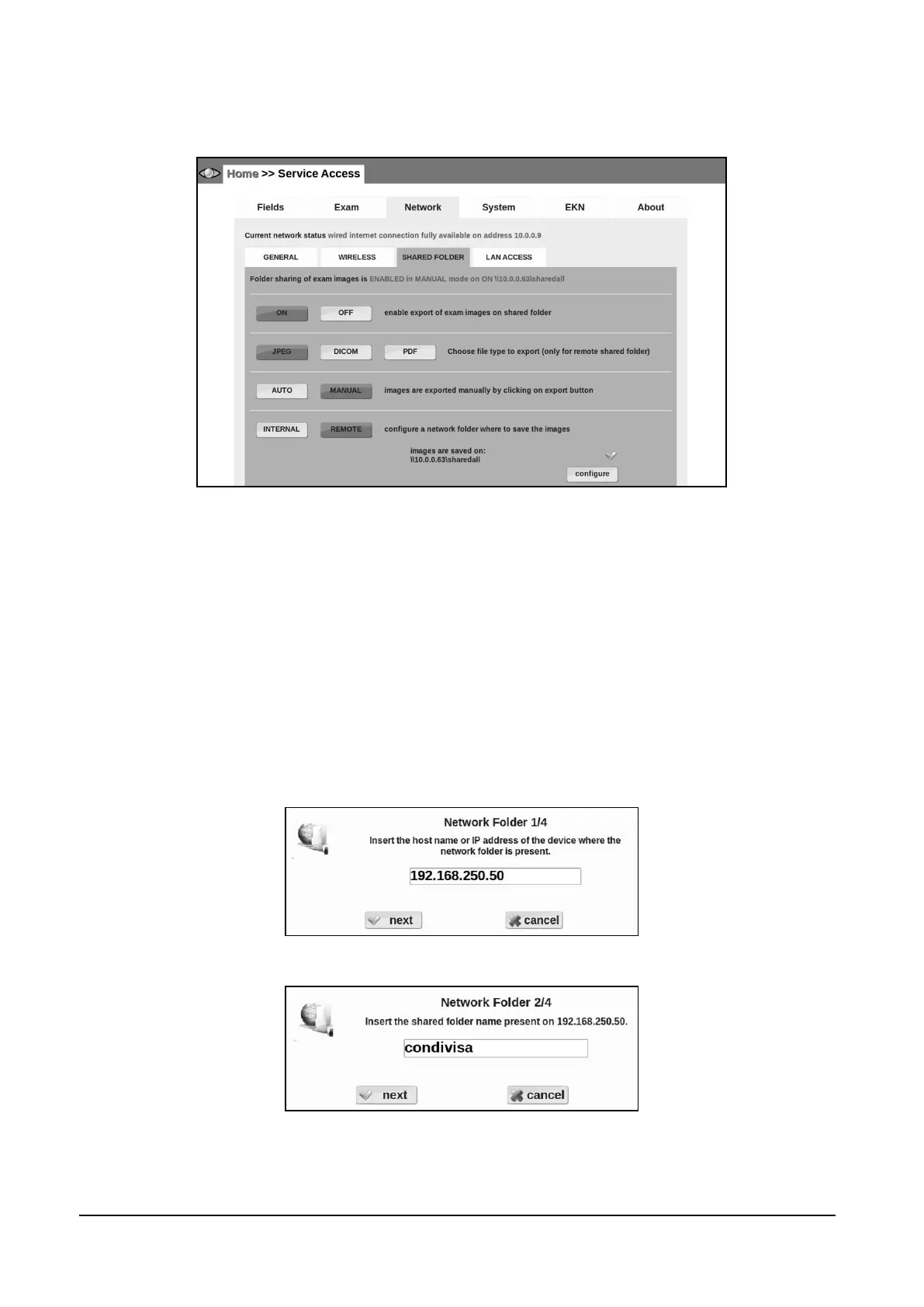 Figure 39 – Network tab in Settings (>> SHARED FOLDER)