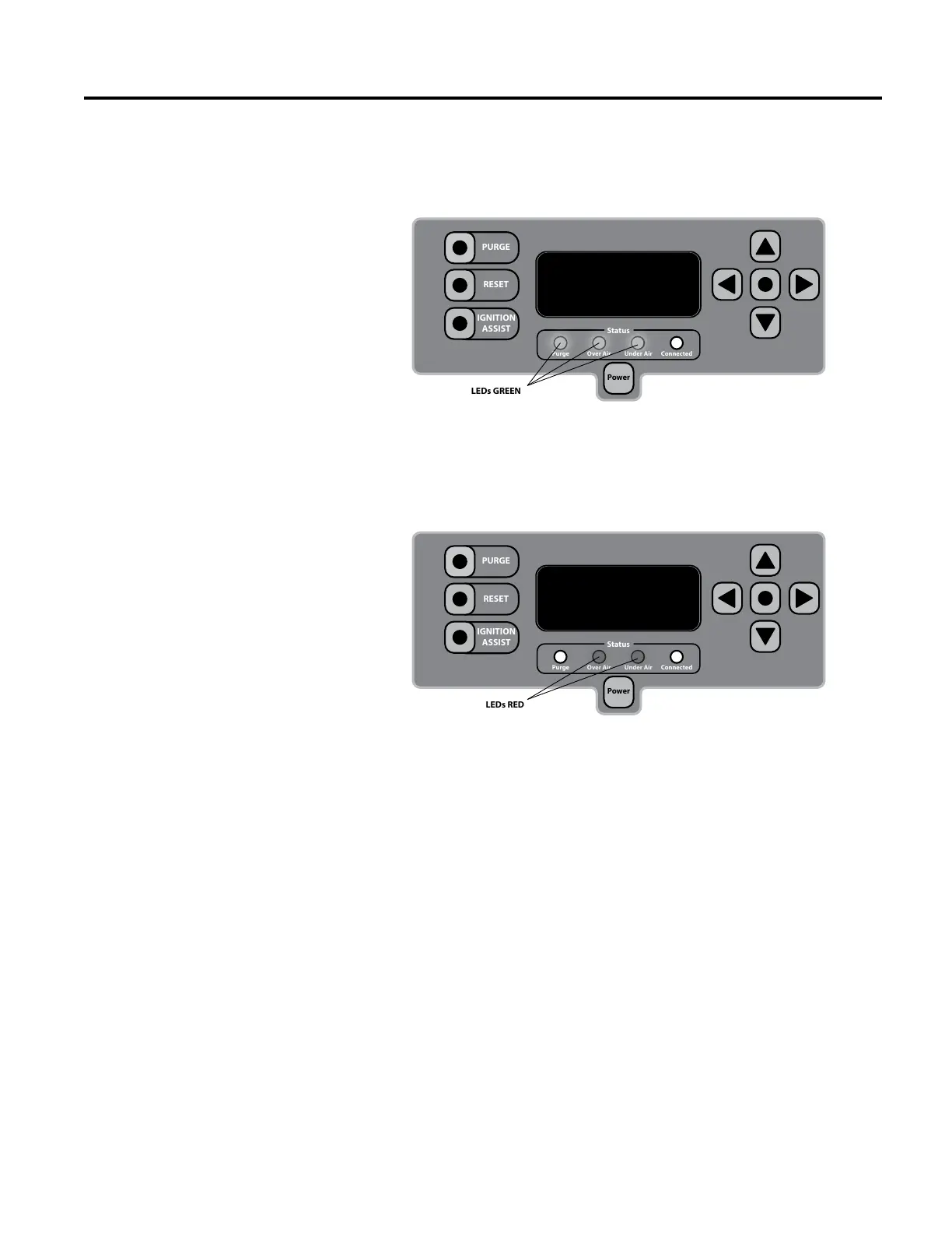 Once Stage 1 of the purge cycle is complete, these three LEDs will turn green.