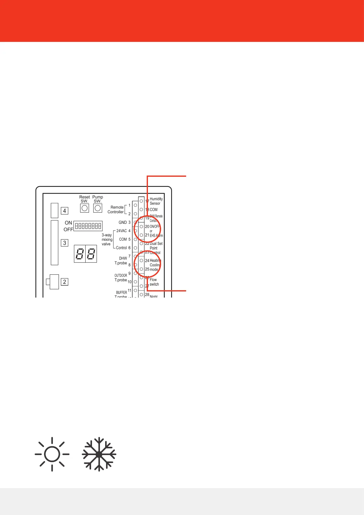pump. Connect the thermostat changover wiring to terminals #24, #25 via the normally open contacts of the